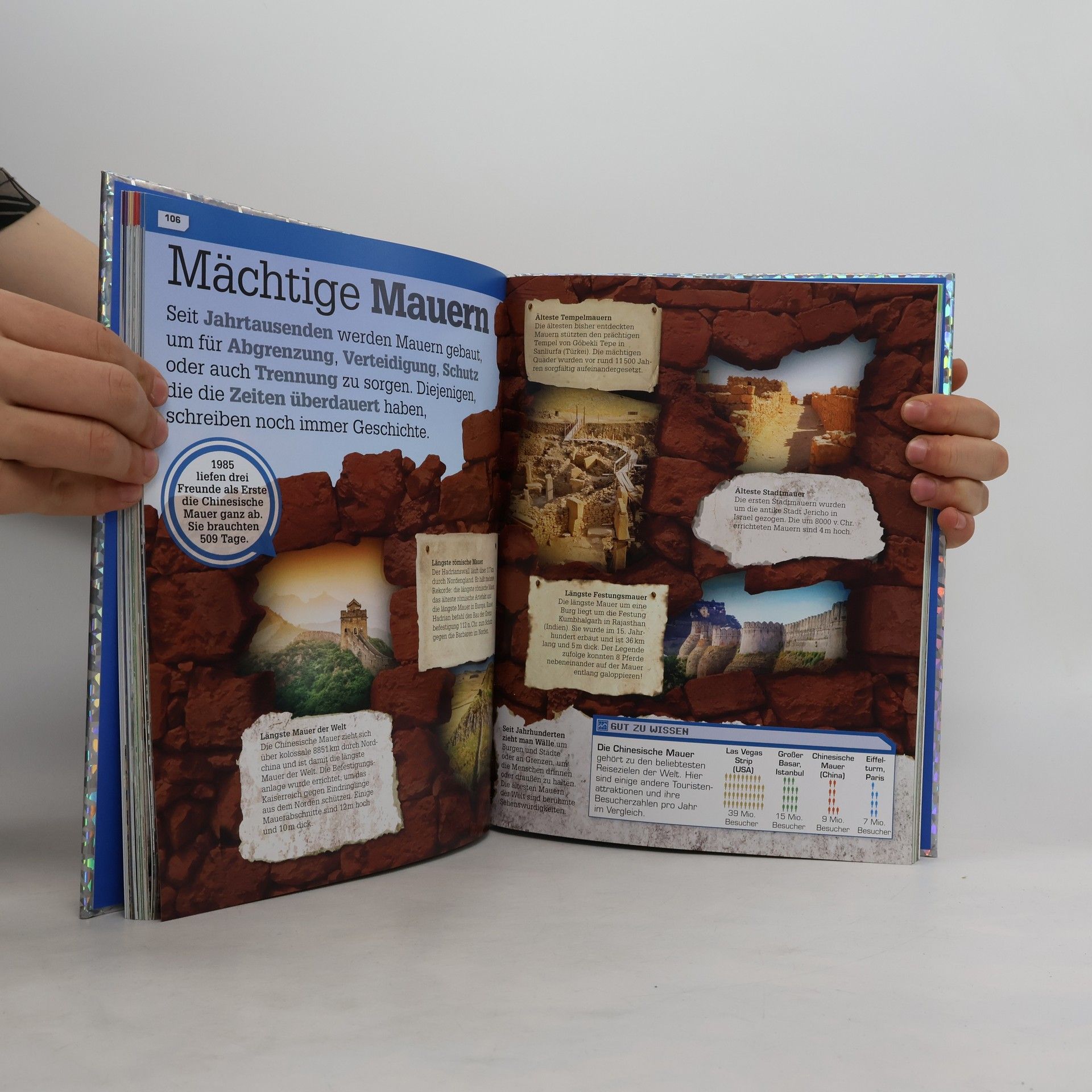 Das ultimative Buch der Rekorde! Überflieger, Supersprinter, Gipfelstürmer, Alleskönner: Dieses geniale Buch der Rekorde steckt voller unglaublicher Höchstleistungen . Spektakuläre Bilder und beeindruckende Grafiken stellen die krassesten Rekorde aus den Bereichen Erde, Kultur, Sport, Natur, Technik und Weltall durch visuelle Vergleiche dar. Dazu gibt’s zahlreiche Statistiken und anschauliche Infografiken mit verblüffenden Fakten – und das alles im knalligen Look mit auffälligem Glitzereffekt-Cover . Faszinierende Rekorde – einzigartig präsentiert: • Knackige, informative Texte. • Gut-zu-wissen-Boxen mit Aha-Erlebnis. • Sensationelle Faktenseiten. • Visuelle Extras. ✓Schneller, höher, weiter: Das grandiose Buch der Rekorde sorgt für Ahs und Ohs bei Kindern und Erwachsenen. Wow-Effekte bei jedem Umblättern garantiert! Dieses Buch ist bei Antolin. de verfügbar.