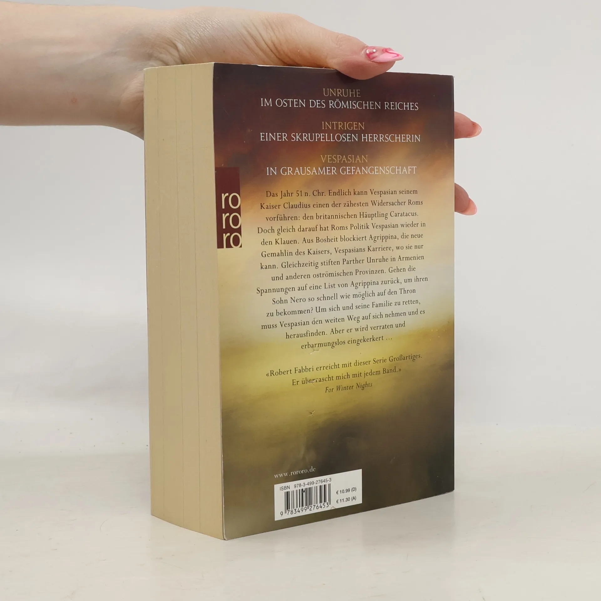 Das britische Bestseller-Epos über das Leben des Kaisers Vespasian geht weiter! Exakt recherchierte Historie und packende Action bieten besten Stoff für Fans von Bernard Cornwell und David Gilman. Das Jahr 51 n. Chr.: Endlich kann Vespasian seinem Kaiser Claudius einen der zähesten Widersacher Roms vorführen: den britannischen Häuptling Caratacus. Doch gleich darauf hat Roms Politik Vespasian wieder in den Klauen. Aus Bosheit blockiert Agrippina, die neue Gemahlin des Kaisers, Vespasians Karriere, wo sie nur kann. Gleichzeitig stiften Parther Unruhe in Armenien und anderen oströmischen Provinzen. Gehen die Spannungen auf eine List von Agrippina zurück, um ihren Sohn Nero so schnell wie möglich auf den Thron zu bekommen? Um sich und seine Familie zu retten, muss Vespasian den weiten Weg auf sich nehmen und es herausfinden. Aber er wird verraten und erbarmungslos eingekerkert …