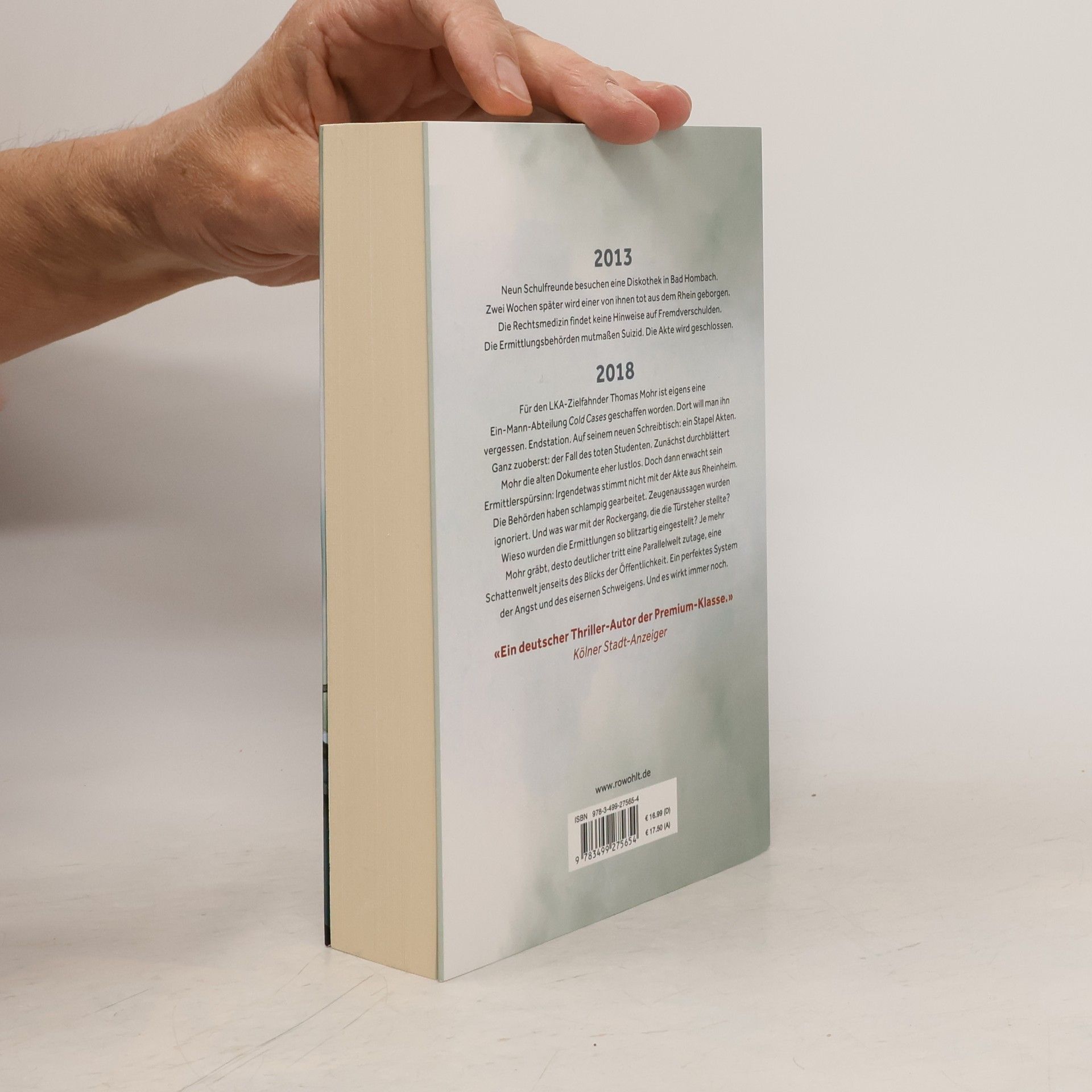 2013 Neun Schulfreunde besuchen eine Diskothek in Bad Hombach. Zwei Wochen später wird einer von ihnen tot aus dem Rhein geborgen. Die Rechtsmedizin findet keine Hinweise auf Fremdverschulden. Die Ermittlungsbehörden mutmaßen Suizid. Die Akte wird geschlossen. 2018 Für den LKA-Zielfahnder Thomas Mohr ist eigens eine Ein-Mann-Abteilung Cold Cases geschaffen worden. Dort will man ihn vergessen. Endstation. Auf seinem neuen Schreibtisch: Ein Stapel Akten. Ganz zuoberst: Der Fall des toten Studenten. Zunächst durchblättert Mohr die alten Dokumente eher lustlos. Doch dann erwacht sein Ermittlerspürsinn: Irgendetwas stimmt nicht mit der Akte aus Rheinheim. Die Behörden haben schlampig gearbeitet. Zeugenaussagen wurden ignoriert. Und was war mit der Rockergang, die die Türsteher stellte? Wieso wurden die Ermittlungen so blitzartig eingestellt? Je mehr Mohr gräbt, desto deutlicher tritt eine Parallelwelt zutage, eine Schattenwelt jenseits des Blicks der Öffentlichkeit. Ein perfektes System der Angst und des eisernen Schweigens. Und es wirkt immer noch. «Ein deutscher Thriller-Autor der Premium-Klasse.» (Kölner Stadt-Anzeiger)