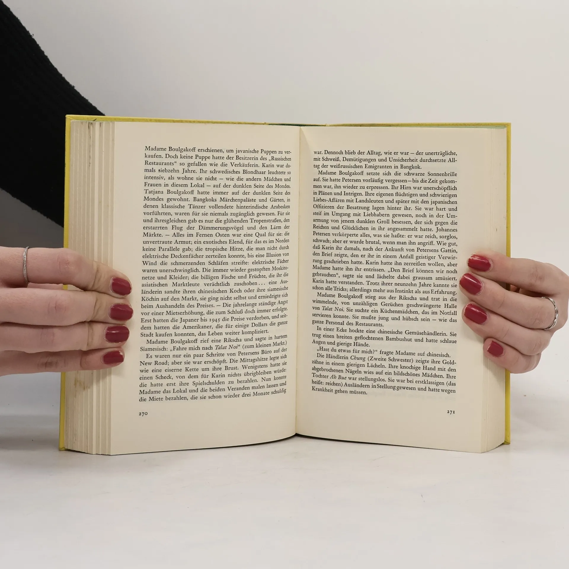 Die vielgelesene Autorin schildert hier fesselnd die Atmosphäre des Fernen Ostens. Aus Kriegs- und Nachkriegsnöten zieht eine Hamburger Kaufmannsfrau mit den Kindern zu ihrem Mann nach Thailand. Die hanseatische Familie sieht sich im Land des Lächelns zuerst ungewöhnlichen Schwierigkeiten gegenüber. Begriffe, die für sie selbstverständlich waren – wie Pünktlichkeit und Zuverlässigkeit –, haben dort keinerlei Bedeutung. Aber erregend wie die exotische Welt, in die die Gäste eintreten, ist der Kreis von Menschen, denen sie in Ceylon, Siam, Hongkong begegnen. Der Schicksalsweg der Familie führt sie durch Paläste und Spelunken, Häfen und Märkte, Privatgemächer und Büros. Märchenfürsten und asiatische Abenteurerinnen kreuzen ihn. Aus den Verlockungen des Wunderlandes kehrt die Familie, reich an Erfahrungen, in die Heimat zurück.