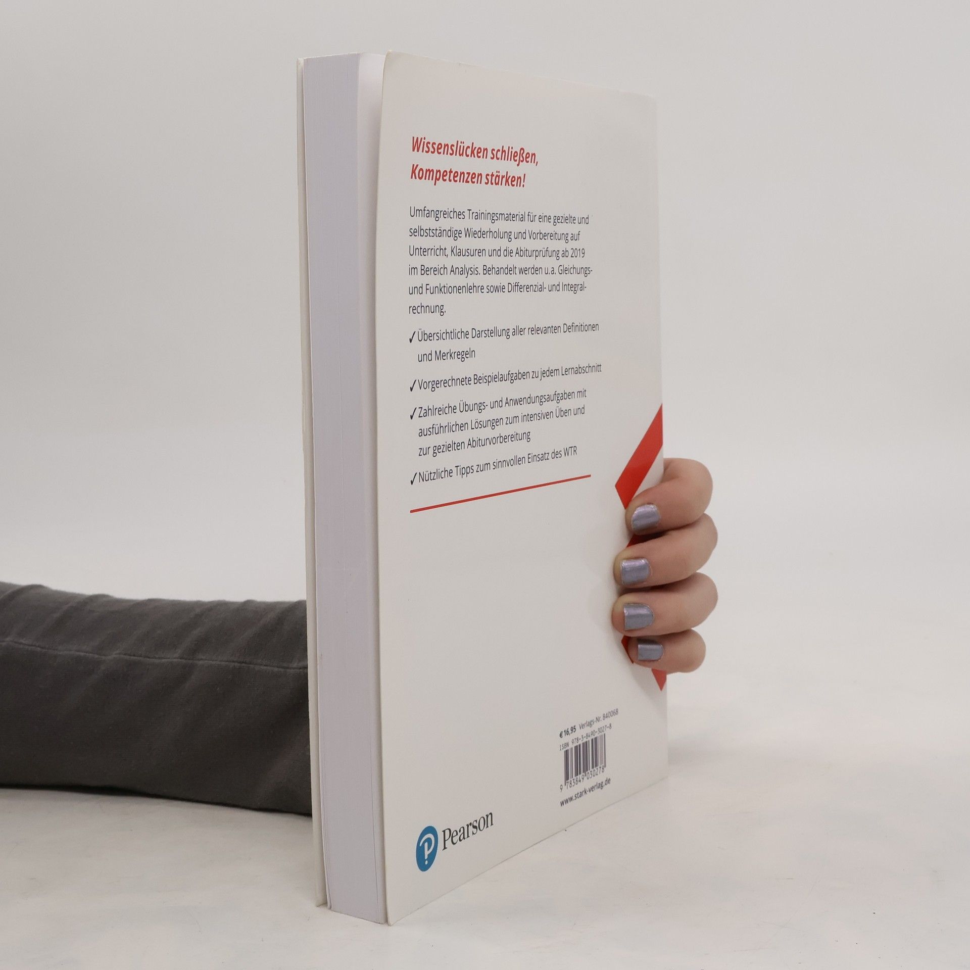 Abitur-Training – Analysis – BaWü Umfangreiches Trainingsmaterial zum gesamten prüfungsrelevanten Stoff der Analysis in Baden-Württemberg , u. a. zur Gleichungs- und Funktionenlehre sowie zur Differenzial- und Integralrechnung . Zum selbstständigen Wiederholen und Üben des Stoffs der Oberstufe am Gymnasium Zur gezielten Vorbereitung auf Klausuren und das Mathematik-Abitur Übersichtliche Darstellung aller relevanten Definitionen und Merkregeln Vorgerechnete Beispielaufgaben zu jedem Lernabschnitt Zahlreiche Übungs- und Anwendungsaufgaben mit ausführlichen Lösungen Nützliche Anleitungen und Tipps zum sinnvollen Einsatz des wissenschaftlichen Taschenrechners (WTR)