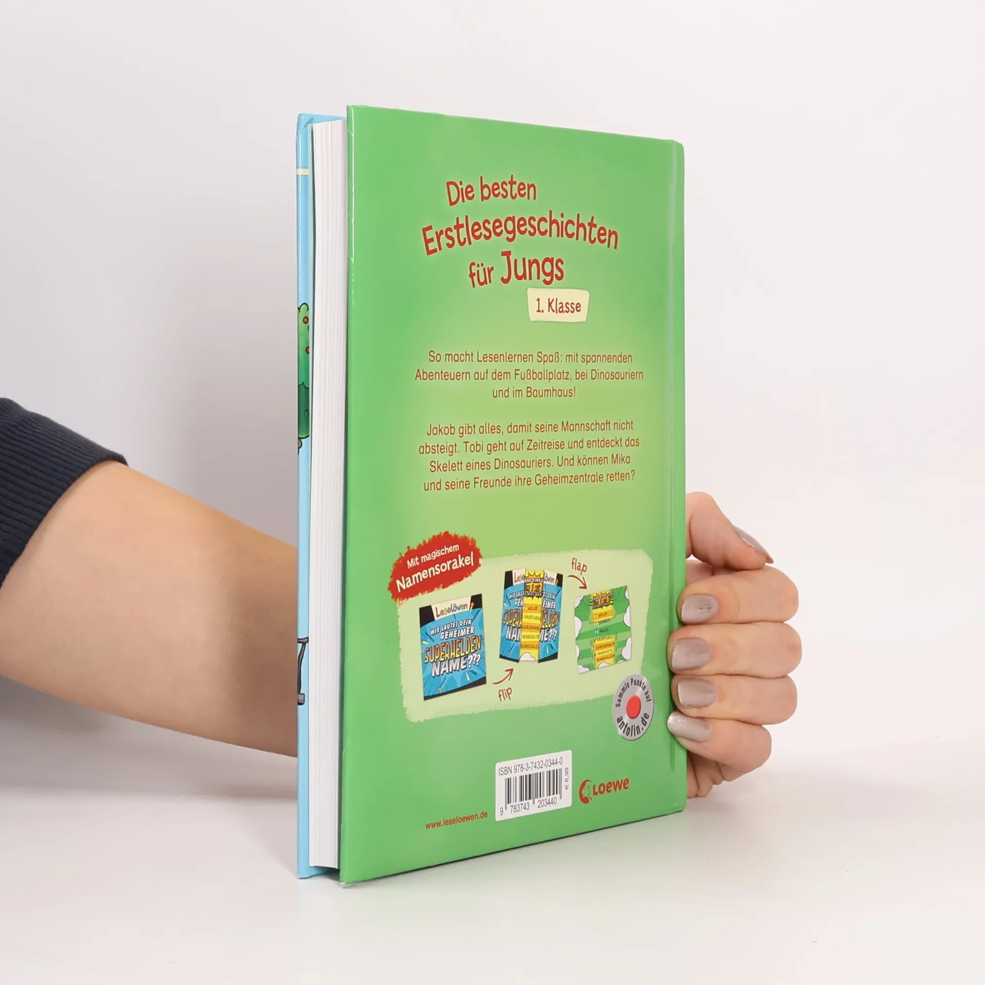 + Bücher, die Kinder gerne lesen wollen + Speziell für Jungs + Ausgewogenes Text-Bild-Verhältnis + Große Schrift + Kurze Kapitel + Geeignet zum Vorlesen und ersten Selberlesen + Ideal zum Lesenlernen + Hochwertiges Hardcover + Mit vielen farbigen Illustrationen + Das Original + Bewährte Qualität + Seit Jahrzehnten Marktführer + Mit Pädagogen entwickelt + Von Lehrkräften empfohlen + So macht Lesenlernen Spaß: Mit spannenden Abenteuern auf dem Fußballplatz, bei Dinosauriern und im Baumhaus! Jakob gibt alles, damit seine Mannschaft nicht absteigt. Tobi geht auf Zeitreise und entdeckt ein Dinosaurier-Skelett. Und können Mika und seine Freunde ihre Geheimzentrale retten? Dieses Kinderbuch für Jungen ab 6 Jahren (1. Klasse) sorgt mit einfachen, kurzen Sätzen in Sinnzeilen und mit seiner großen Fibelschrift für schnellen Erfolg beim Lesenlernen. Die vielen bunten Bilder tragen zusätzlich zum Textverständnis bei. So macht lesen Spaß!