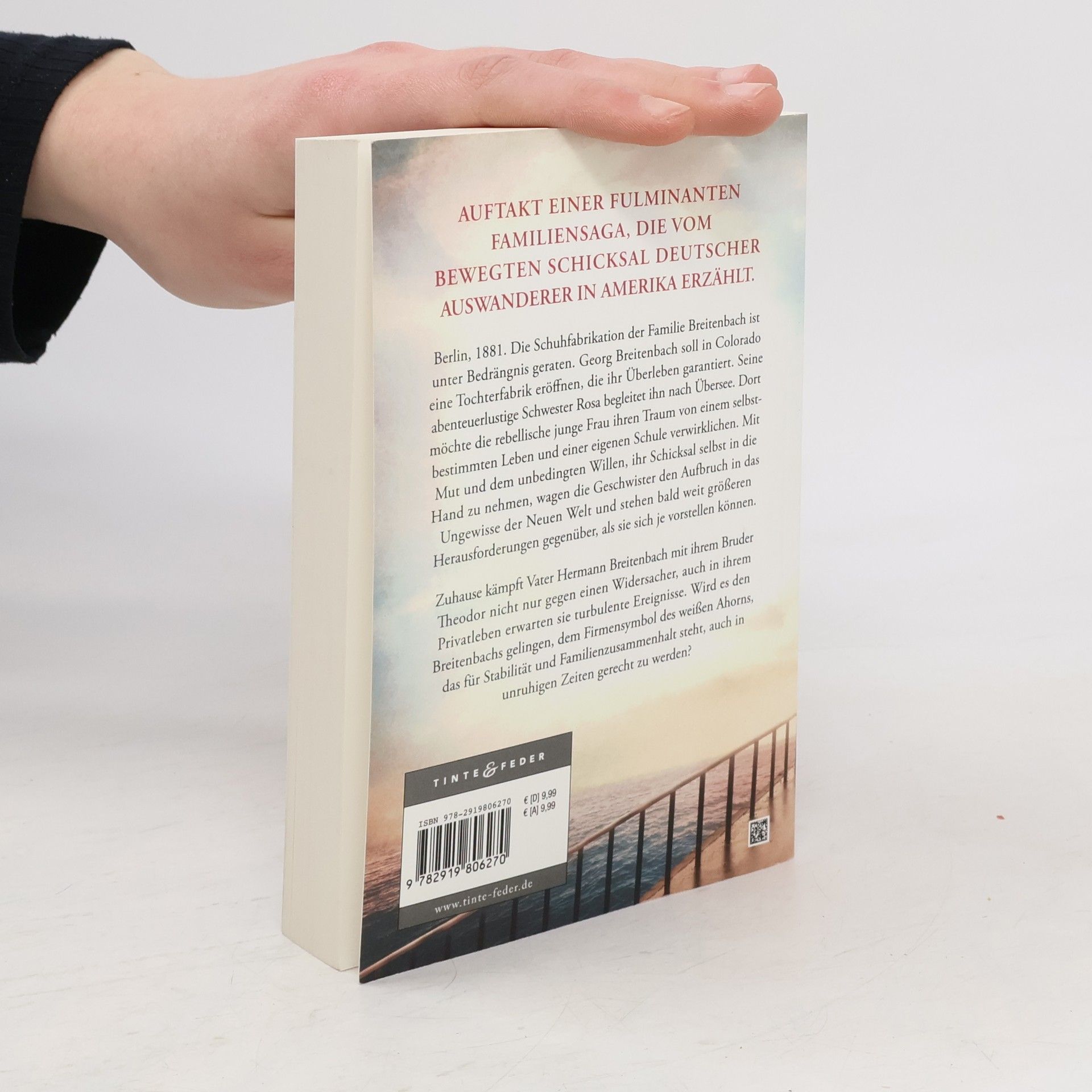 Auftakt einer fulminanten Familiensaga, die vom bewegten Schicksal deutscher Auswanderer in Amerika erzählt und zugleich die Stadt Berlin am Ende des 19. Jahrhunderts schillernd in Szene setzt. Berlin, 1881. Die Schuhfabrikation der Familie Breitenbach ist unter Bedrängnis geraten. Georg Breitenbach soll in Colorado eine Tochterfabrik eröffnen, die ihr Überleben garantiert. Seine abenteuerlustige Schwester Rosa begleitet ihn nach Übersee. Dort möchte die rebellische junge Frau ihren Traum von einem selbstbestimmten Leben und einer eigenen Schule verwirklichen. Mit Mut und dem unbedingten Willen, ihr Schicksal selbst in die Hand zu nehmen, wagen die Geschwister den Aufbruch in das Ungewisse der Neuen Welt und stehen bald weit größeren Herausforderungen gegenüber, als sie sich je vorstellen können. Zuhause kämpft Vater Hermann Breitenbach mit ihrem Bruder Theodor nicht nur gegen einen Widersacher, auch in ihrem Privatleben erwarten sie turbulente Ereignisse. Wird es den Breitenbachs gelingen, dem Firmensymbol des weißen Ahorns, das für Stabilität und Familienzusammenhalt steht, auch in unruhigen Zeiten gerecht zu werden?