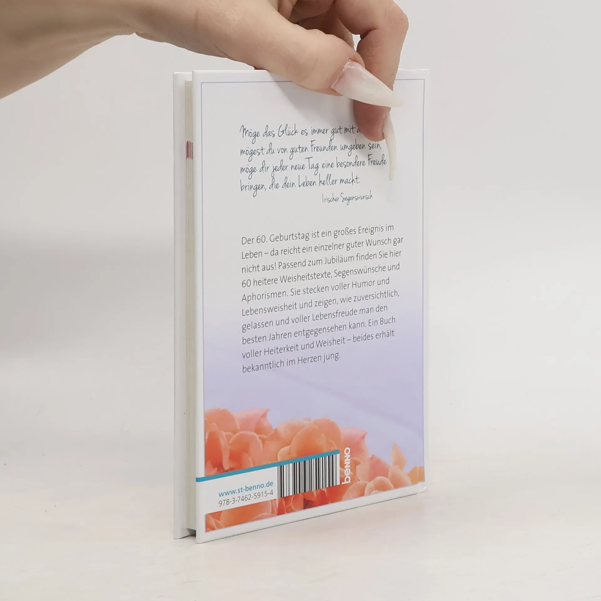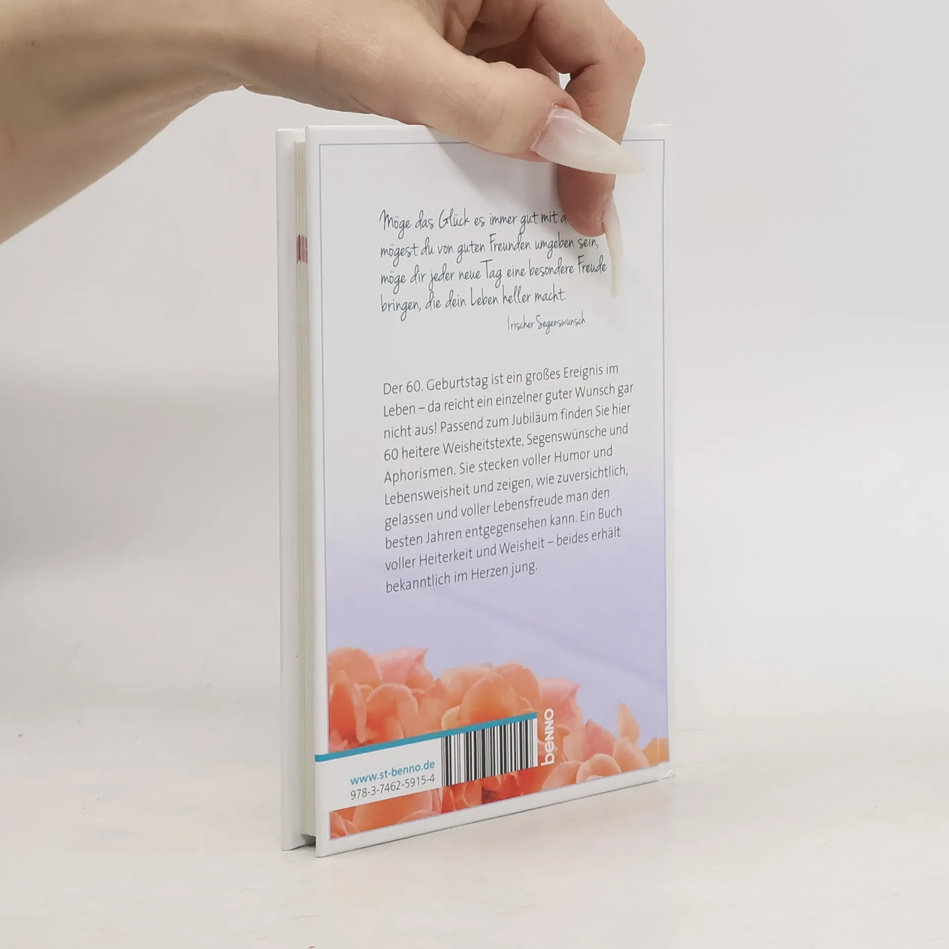 Der 60. Geburtstag ist ein großes Ereignis im Leben - da reicht ein einzelner guter Wunsch gar nicht aus! Passend zum Jubiläum finden Sie hier 60 heitere Weisheitstexte, Segenswünsche und Aphorismen. Sie stecken voller Humor und Lebensweisheit und zeigen, wie zuversichtlich, gelassen und voller Lebensfreude man den besten Jahren entgegensehen kann. Ein Buch voller Heiterkeit und Weisheit - beides erhält bekanntlich im Herzen jung.