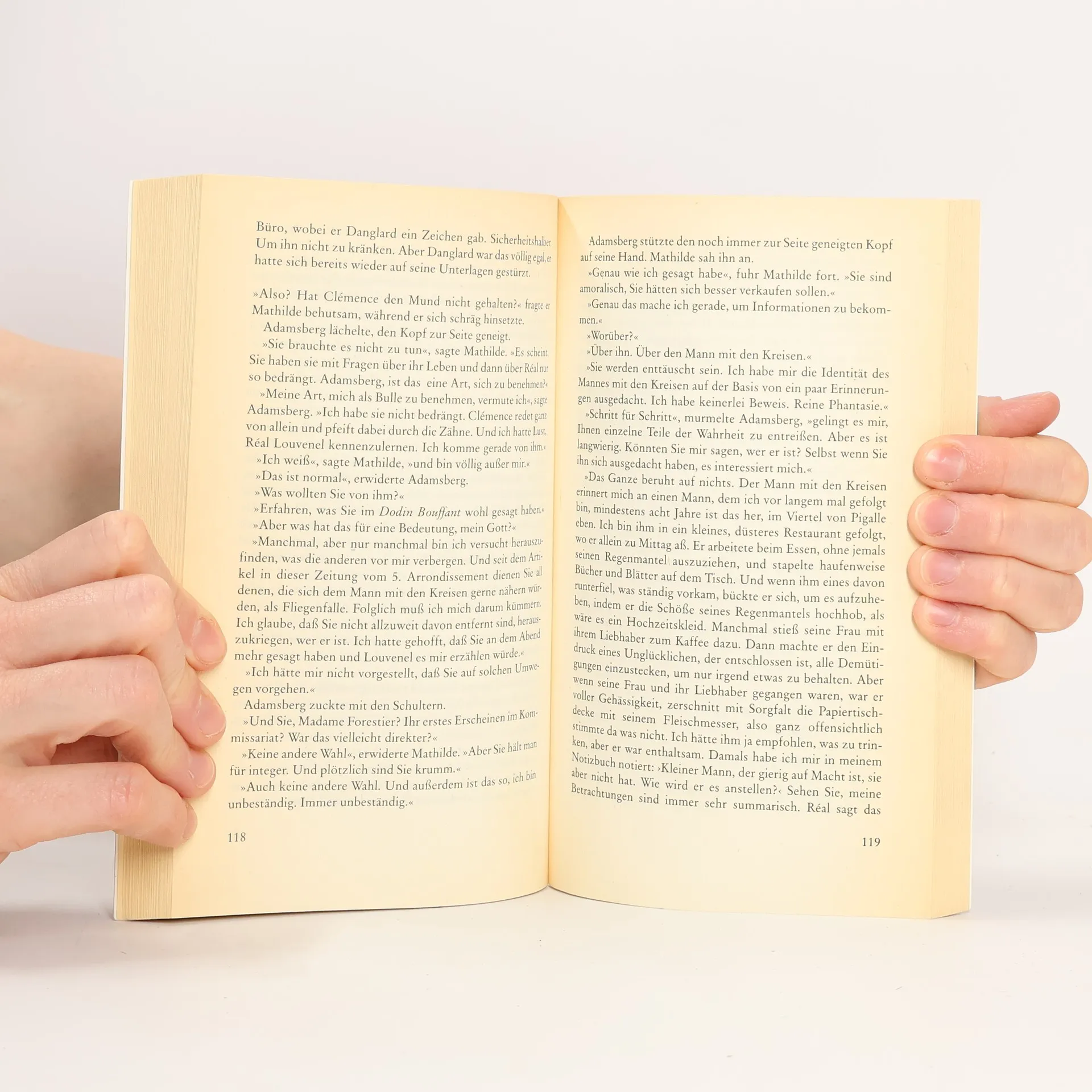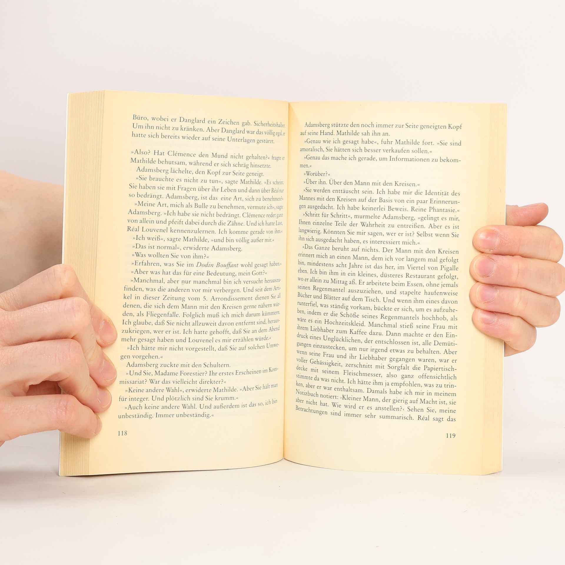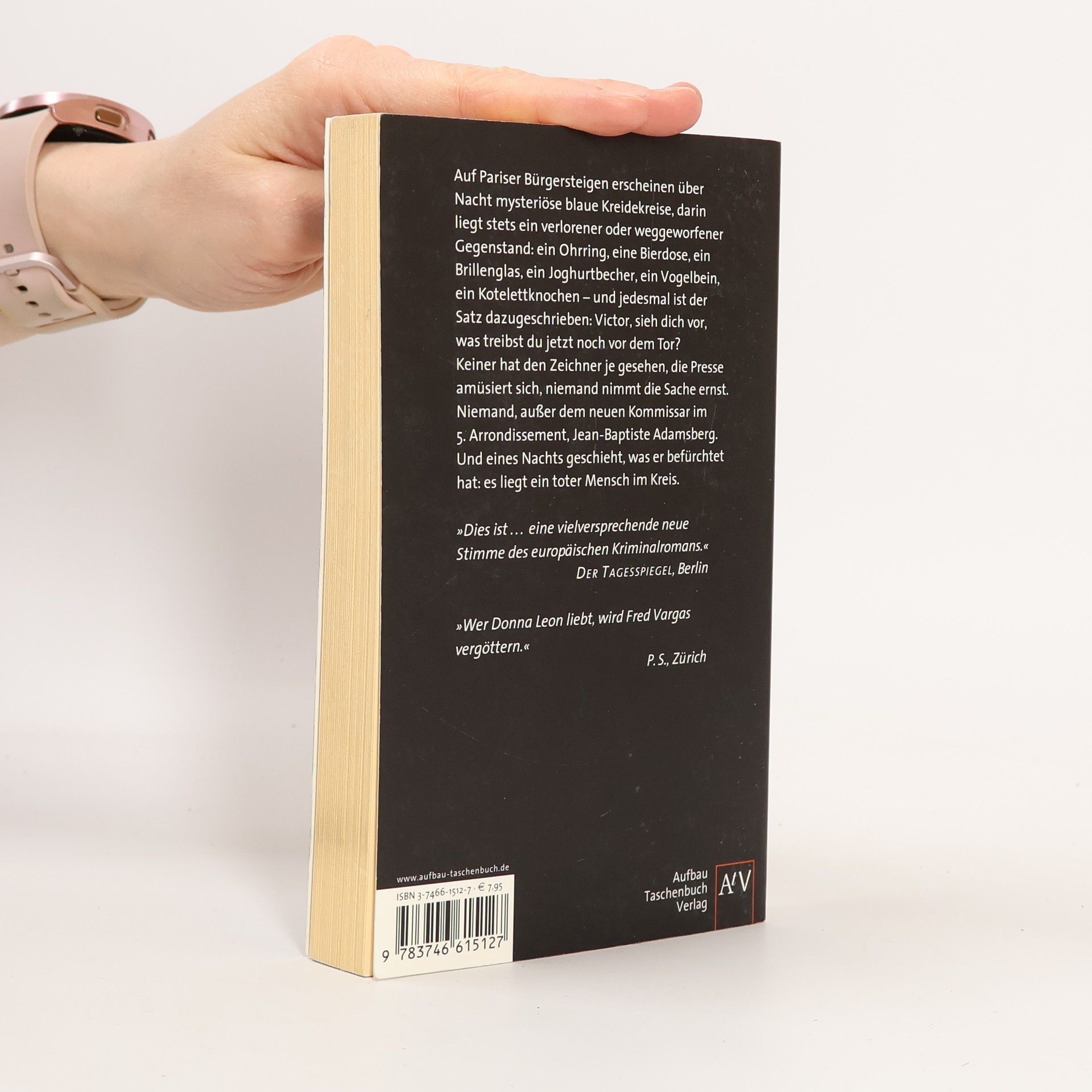 Auf Pariser Bürgersteigen erscheinen über Nacht mysteriöse blaue Kreidekreise, und darin stets ein verlorener oder weggeworfener Gegenstand: ein Ohrring, eine Bierdose, ein Brillenglas, ein Joghurtbecher ... Keiner hat den Zeichner je gesehen, die Presse amüsiert sich, niemand nimmt die Sache ernst. Niemand, außer dem neuen Kommissar im 5. Arrondissement, Jean-Baptiste Adamsberg. Und eines Nachts geschieht, was er befürchtet hat: es liegt ein toter Mensch im Kreidekreis.