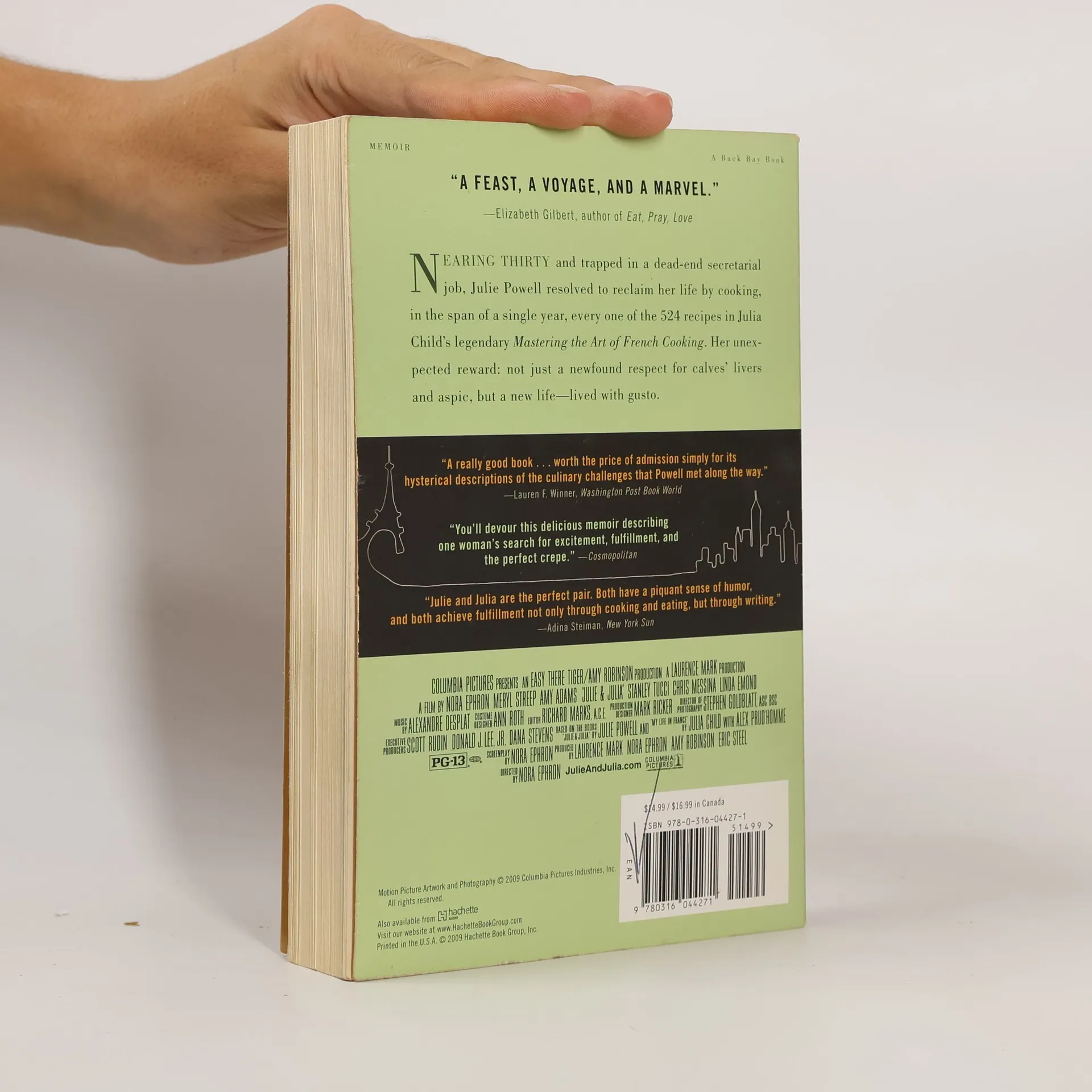 Julie & Julia, the bestselling memoir that's "irresistible....A kind of Bridget Jones meets The French Chef" (Philadelphia Inquirer), is now a major motion picture. Julie Powell, nearing thirty and trapped in a dead-end secretarial job, resolves to reclaim her life by cooking in the span of a single year, every one of the 524 recipes in Julia Child's legendary Mastering the Art of French Cooking. Her unexpected reward: not just a newfound respect for calves' livers and aspic, but a new life-lived with gusto. The film version is written and directed by Nora Ephron and stars Amy Adams as Julie and Meryl Streep as Julia.