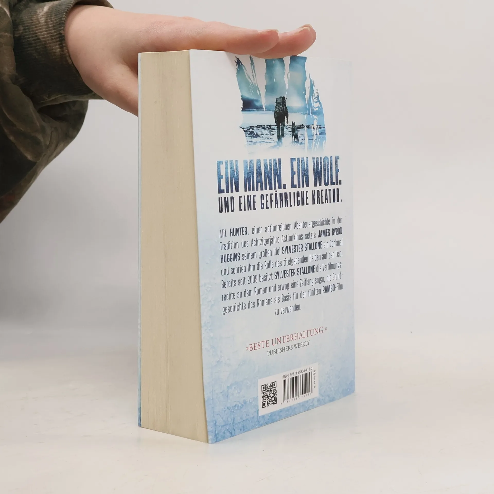 Nathaniel Hunter gilt als der beste Jäger und Fährtensucher der Welt. Als eine unbekannte, mysteriöse Kreatur eine blutige Spur durch die unwirtliche Wildnis Alaskas hinter sich herzieht, wendet sich das Militär hilfesuchend an ihn. Er soll das Monstrum finden und zur Strecke bringen. Doch als die Kreatur sich den ersten bewohnten Ortschaften nähert, wird Hunter schnell klar, dass es sich hier um kein gewöhnliches Tier handelt. Diese Bestie ist schneller und kräftiger als jedes Tier, das er bislang aufspüren musste, und sie scheint den Blutdurst und die Instinkte der gefährlichsten Raubtiere aller Zeiten in sich zu vereinen – und eine auf beängstigende Weise beinahe menschliche Intelligenz zu besitzen. Eine Kreatur, die sich vielleicht nicht mehr aufhalten lässt … Mit seinen Roman HUNTER setzte James Byron Huggins seinem großen Idol Sylvester Stallone ein Denkmal und schrieb ihm die Rolle des titelgebenden Helden auf den Leib. So war es kein Wunder, dass Sylvester Stallone 2009 die Rechte an dem Stoff erwarb und erwog, die Grundgeschichte des Romans als Basis für einen geplanten fünften Rambo-Film zu verwenden. Einige Zeit später verwarf man die Idee jedoch wieder zugunsten einer weniger fantastischen Handlung. Ende 2018 ließ Sylvester Stallone jedoch vermelden, dass er beabsichtigt, James Byron Huggins’ Roman mit seiner Produktionsfirma Balboa Productions als eigenständigen Film auf die große Leinwand zu bringen.