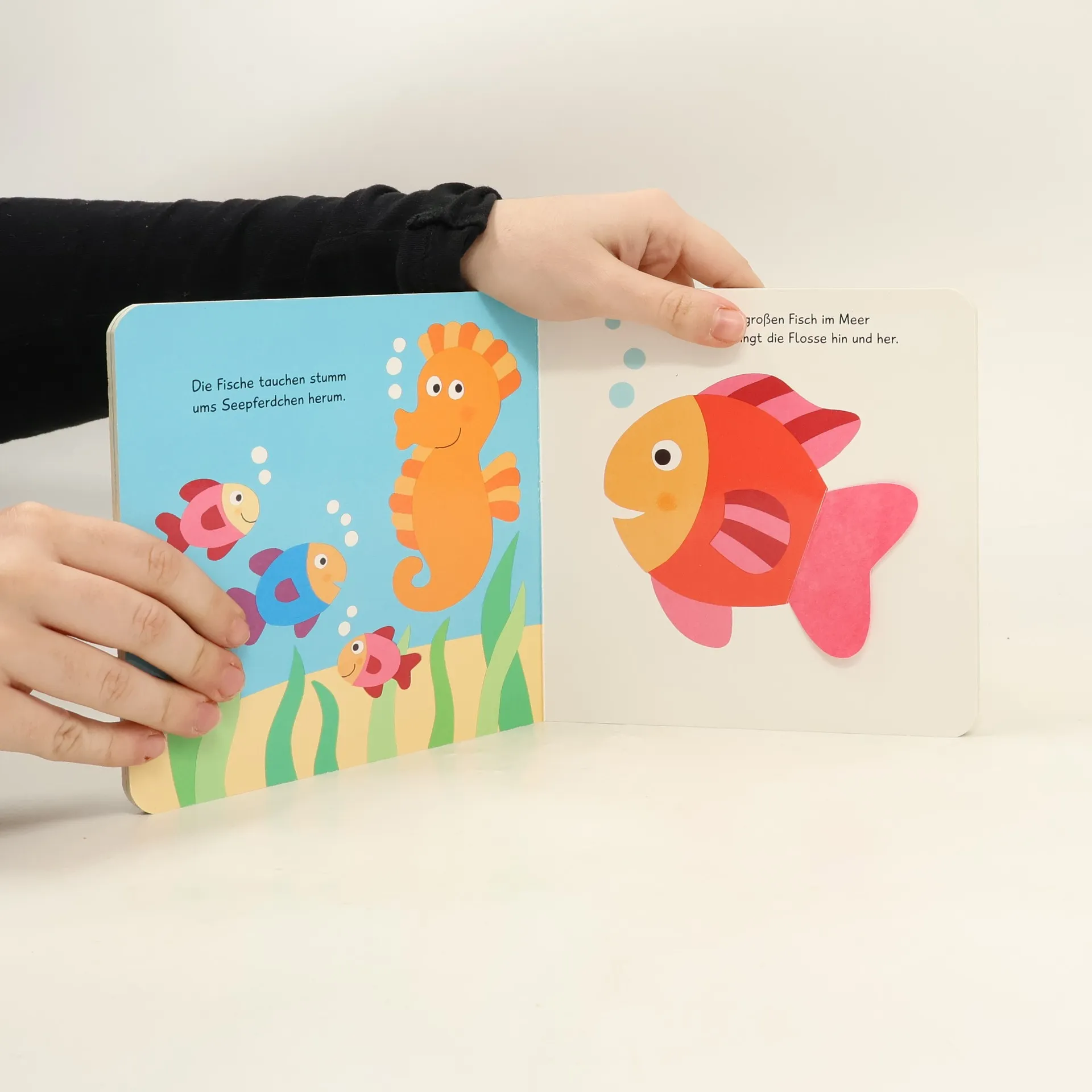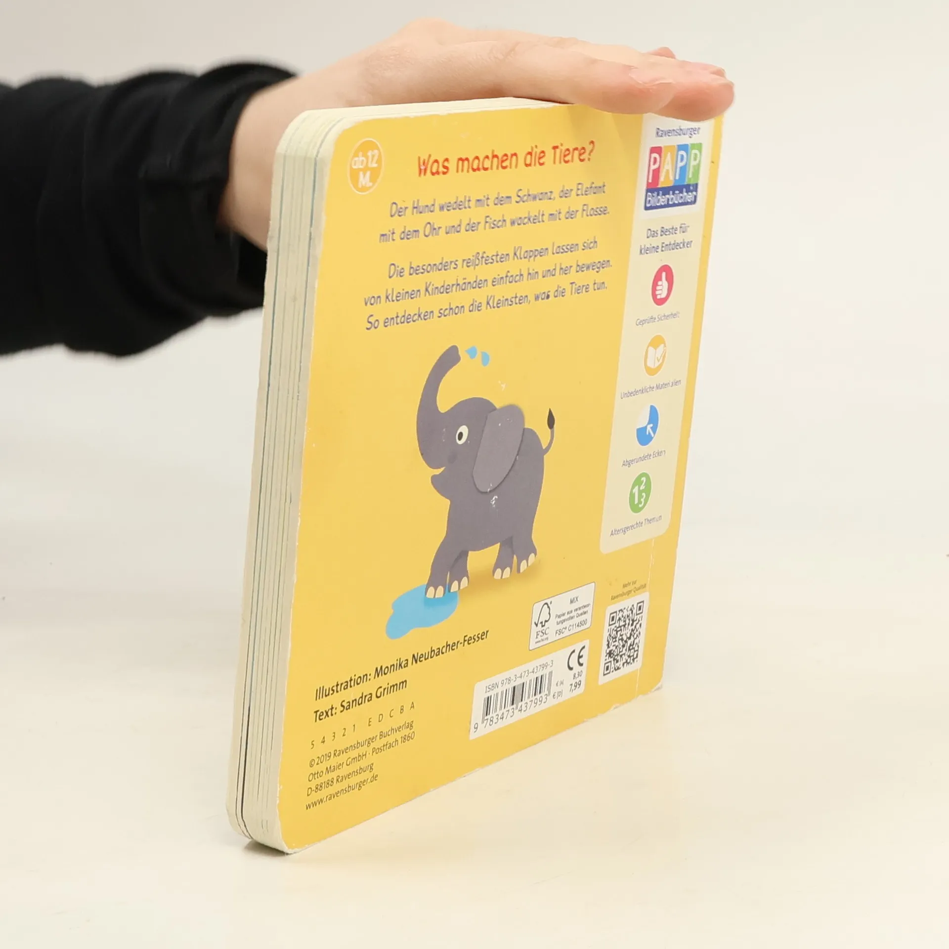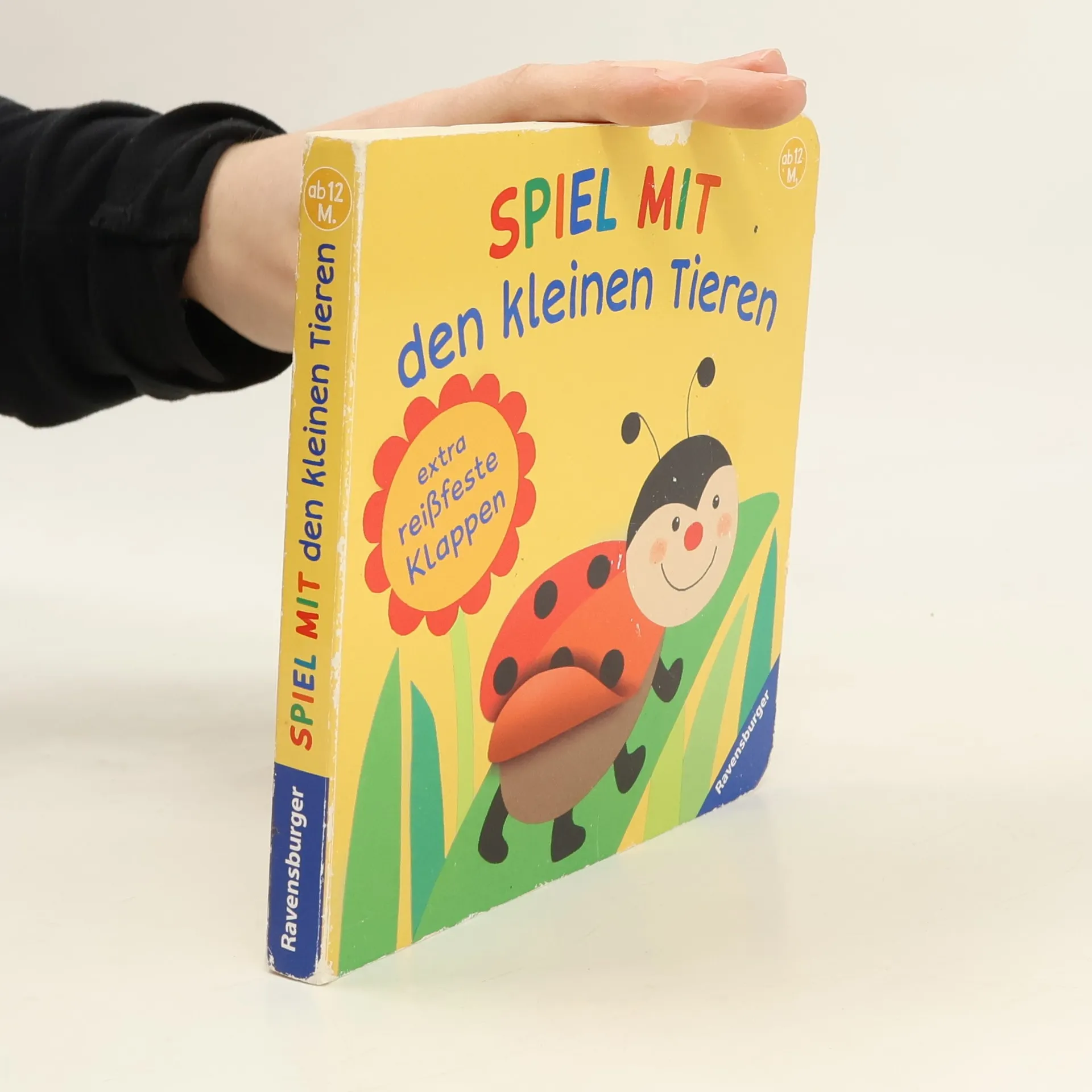 Ein erstes Spielbuch mit Klappen Der Hundeschwanz wedelt hin und her, das Elefantenohr wackelt vor und zurück. Und guck mal, wie der Fisch mit seiner Flosse zappelt! Hier erleben Babys ab 12 Monaten wie sich die Tiere bewegen. Die reißfesten Klappen machen das möglich: Einfach zu bewegen und groß genug für kleine Kinderhände. Kurze Reime regen die Kleinen zum Spielen an und fördern nebenbei den Spracherwerb. Das Huhn pickt Körner, Schmetterling flattert mit den Flügeln und das Hündchen wedelt mit dem Schwanz – hier entdecken Kinder ab 12 Monaten, wie sich die Tiere bewegen. Die besonders reißfesten Klappen halten dauerhaft starker Belastung stand und sind auch von den Kleinsten einfach zu nutzen. Liebevolle, kurze Reime fordern zum Spielen und Mitmachen auf. Altersgerechte Bilder fördern das Erkennen der Tiere und unterstützen damit die kognitive und motorische Entwicklung von Babys und Kleinkindern.