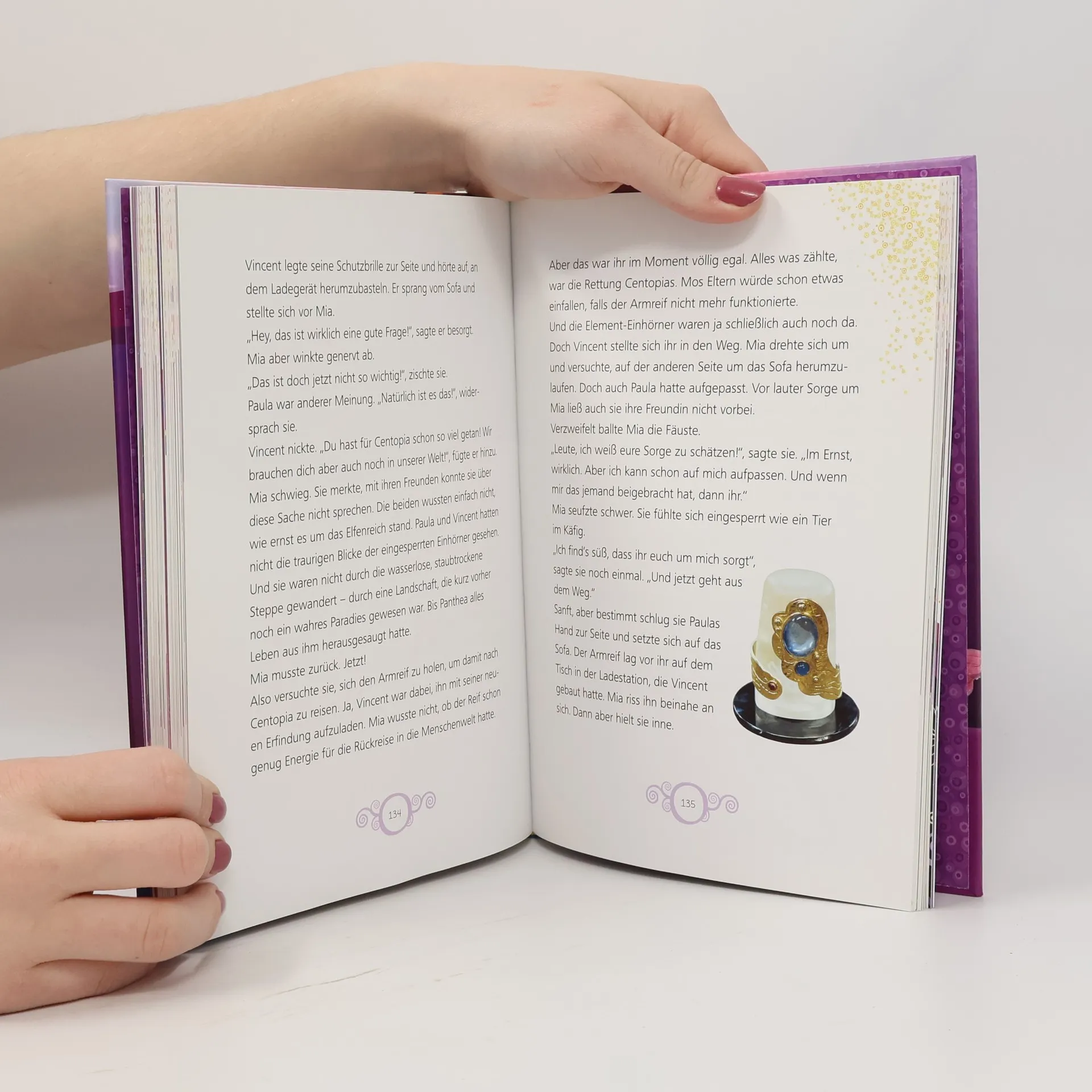 Komm mit nach Centopia! Als Mia am Internat in Florenz ankommt, ahnt sie noch nicht, wie sehr sich ihr Leben verändern wird. Am selben Tag reist sie zum ersten Mal in das magische Land Centopia, wo sie Pane, Elfen und Einhörner trifft. Doch die Einhörner sind in Gefahr! Gelingt es Mia und ihren neuen Freunden, die böse Königin Panthea zu vertreiben? Dieser Sammelband zur ersten Staffel enthält drei komplette Folgen: „Ankunft in Centopia“, „Das goldene Einhorn“ und „Die große Entscheidung“. Die Ereignisse zwischen den Folgen werden kurz nacherzählt, sodass du Mias Abenteuer mit Onchao, Yuko und Mo von Anfang an miterleben kannst! Mia ist 12 und besucht ein Internat in Florenz. Zum Start an der neuen Schule übergibt ihre Tante ihr ein Geschenk von ihren Eltern: das Buch „Die Legende von Centopia“ und ein wunderschöner Armreif. Plötzlich reist Mia in die magische Welt Centopia, wo sie Pan Phuddle, das Einhorn Lyria und die Elfen Yuko und Mo kennenlernt. Gemeinsam versuchen sie, die böse Königin Panthea zu besiegen und alle Einhörner zu retten. Dieser Sammelband ist eine wunderbare Geschenkidee für Fans von Mia and me sowie für Liebhaber von Geschichten mit Einhörnern und Elfen. Die drei schönsten Folgen der ersten Staffel sind vollständig enthalten, und das Cover ist mit Goldfolie veredelt, was den Inhalt besonders macht.