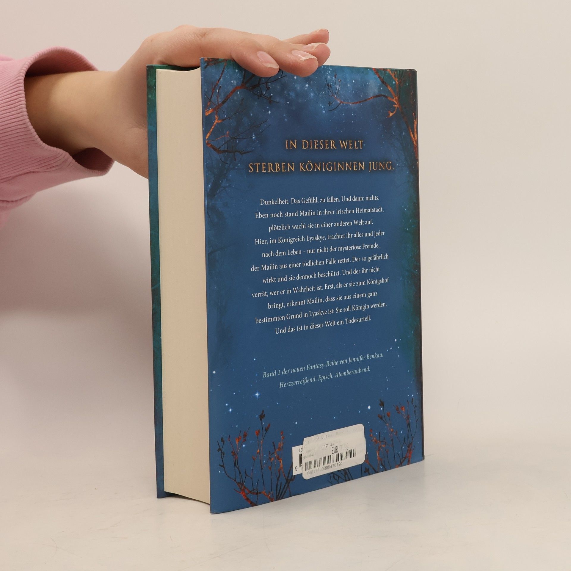 In dieser Welt sterben Königinnen jung. Dunkelheit. Das Gefühl, zu fallen. Und dann: nichts. Eben noch stand Mailin in ihrer Heimatstadt, plötzlich wacht sie in einer anderen Welt auf. Im Königreich Lyaskye trachtet ihr alles und jeder nach dem Leben – nur nicht der mysteriöse Fremde, der Mailin aus einer Falle rettet. Der so gefährlich wirkt und sie dennoch beschützt. Erst als er sie zum Königshof bringt, erkennt Mailin, dass sie nicht ohne Grund in Lyaskye ist: Sie soll Königin werden. Und das ist in dieser Welt ein Todesurteil. Band 1 der High-Romantasy-Reihe von SPIEGEL-Bestsellerautorin Jennifer Benkau Herzzerreißend. Episch. Atemberaubend. Jennifer Benkaus Romantasy-Reihen „One True Queen“, „Das Reich der Schatten“ und „The Lost Crown“ spielen in derselben Fantasy-Welt, können aber unabhängig voneinander gelesen werden. Sie sind in dieser Reihenfolge erschienen: One True Queen, Band 1: Von Sternen gekrönt One True Queen, Band 2: Aus Schatten geschmiedet Das Reich der Schatten, Band 1: Her Wish So Dark Das Reich der Schatten, Band 2: His Curse So Wild The Lost Crown, Band 1: Wer die Nacht malt The Lost Crown, Band 2: Wer das Schicksal zeichnet New-Adult-Romance von Jennifer Benkau: A Reason To Stay (Liverpool-Reihe 1) A Reason To Hope (Liverpool-Reihe 2)