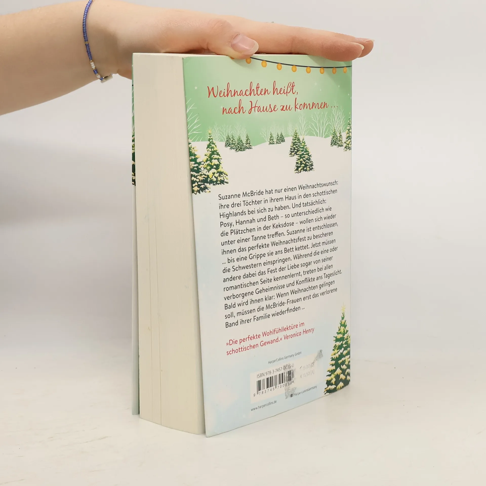Weihnachten heißt, nach Hause zu kommen … Suzanne McBride hat nur einen Weihnachtswunsch: ihre drei Töchter in ihrem Haus in den schottischen Highlands bei sich zu haben. Und tatsächlich: Posy, Hannah und Beth – so unterschiedlich wie die Plätzchen in der Keksdose – wollen sich wieder unter einer Tanne treffen. Suzanne ist entschlossen, ihnen das perfekte Weihnachtsfest zu bescheren … bis eine Grippe sie ans Bett kettet. Jetzt müssen die Schwestern einspringen. Während die eine oder andere dabei das Fest der Liebe sogar von seiner romantischen Seite kennenlernt, treten bei allen verborgene Geheimnisse und Konflikte ans Tageslicht. Bald wird ihnen klar: Wenn Weihnachten gelingen soll, müssen die McBride-Frauen erst das verlorene Band ihrer Familie wiederfinden … »Die perfekte Wohlfühllektüre im schottischen Gewand.« Veronica Henry »Das perfekte Geschenk für Fans von warmherzigen Geschichten über Schwestern und Liebe.« Booklist »Die Geschichte ist gut geschrieben und so mitreißend, dass man sich mit dem Buch […] und ein paar gebackenen Plätzchen einen gemütlichen Nachmittag machen kann.« Delmenhorster Kreisblatt, 26.11.2020
