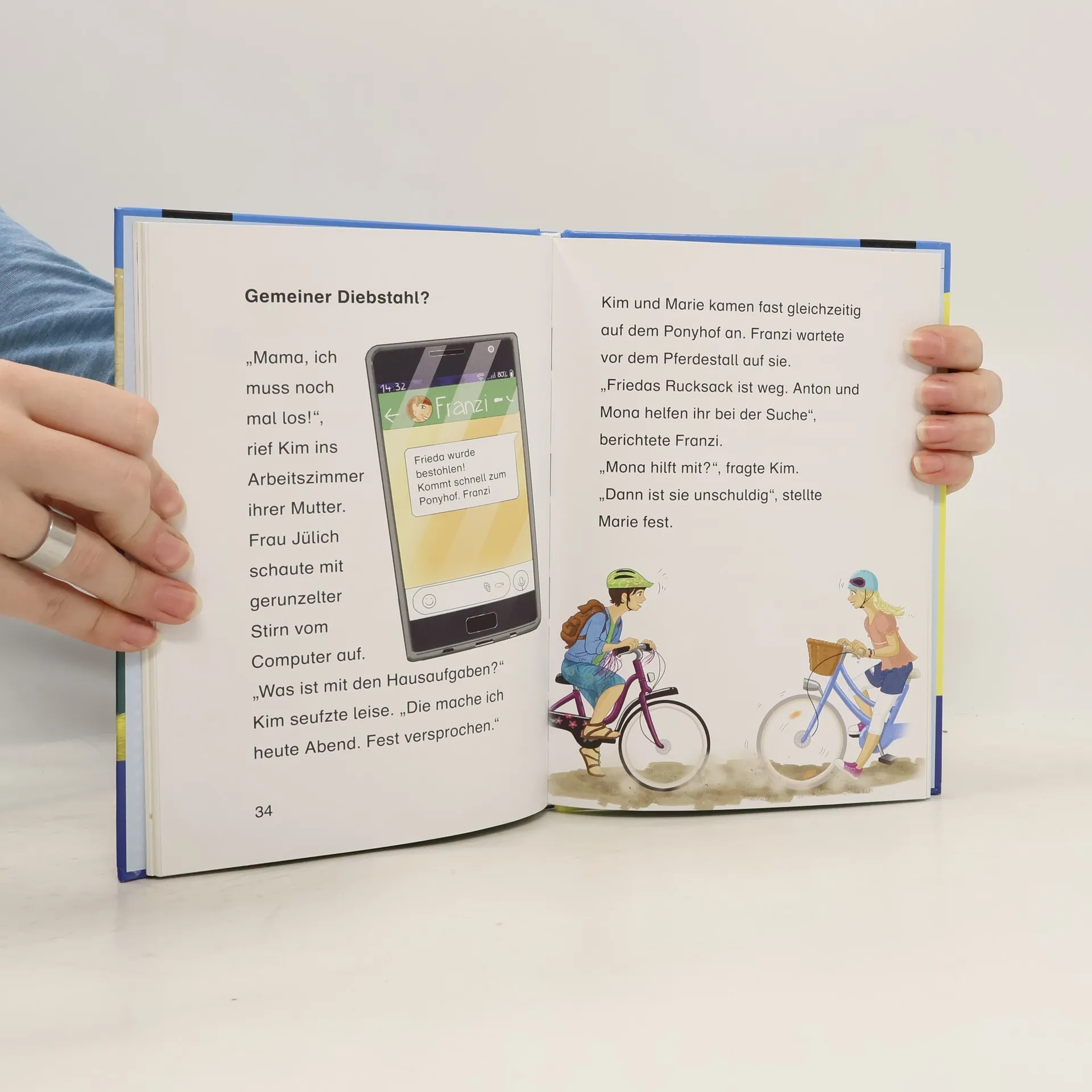 Kim, Franzi und Marie sind beste Freundinnen und Detektivinnen! Zusammen haben die drei !!! schon viele knifflige Fälle gelöst. Wer spielt der kleinen Frieda gemeine Streiche? Die drei !!! ermitteln auf dem Ponyhof. Lesen lernen ist schwer? Nicht mit dieser spannenden Geschichte, die auch Leseanfänger ab Klassenstufe 2 leicht bewältigen können. Illustrationen und ein Leserätsel am Ende jedes Kapitels machen den Band abwechslungsreich, sorgen für Erfolgserlebnisse und erhöhen die Lesemotivation. So macht der Einstieg ins selbstständige Bücherlesen einfach Spaß.