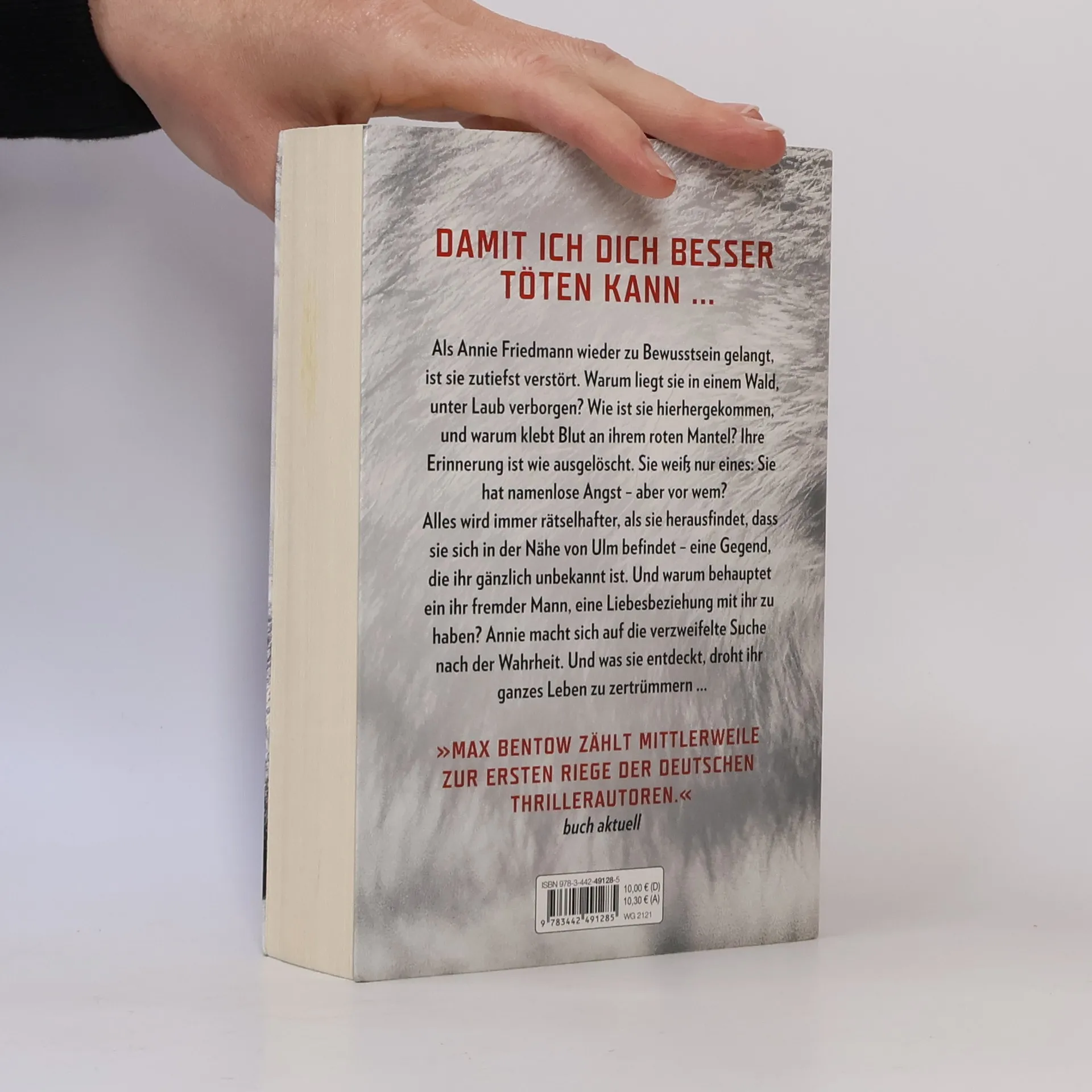 Als Annie Friedmann wieder zu Bewusstsein gelangt, ist sie zutiefst verstört. Warum liegt sie in einem Wald, unter Laub verborgen? Wie ist sie hierhergekommen, und warum klebt Blut an ihrem roten Mantel? Ihre Erinnerung ist wie ausgelöscht. Sie weiß nur eines: Sie hat namenlose Angst – aber vor wem? Alles wird immer rätselhafter, als sie herausfindet, dass sie sich in der Nähe von Ulm befindet – eine Gegend, die ihr gänzlich unbekannt ist. Und warum behauptet ein ihr fremder Mann, eine Liebesbeziehung mit ihr zu haben? Annie macht sich auf die verzweifelte Suche nach der Wahrheit. Und was sie entdeckt, droht ihr ganzes Leben zu zertrümmern ...