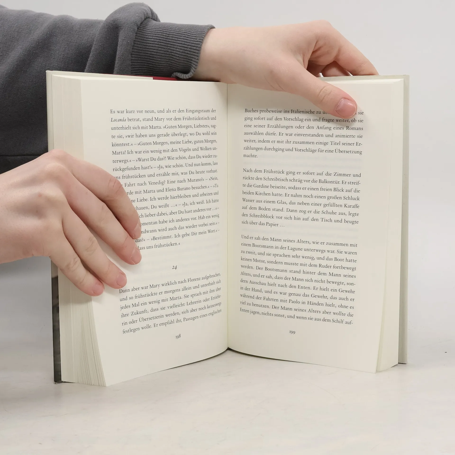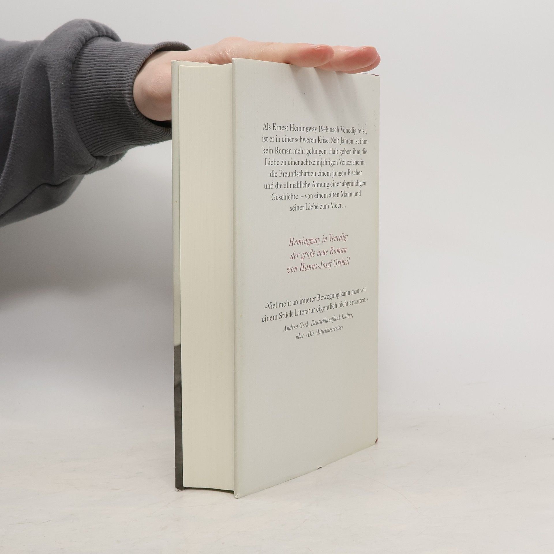 Hemingway in Venedig Als Ernest Hemingway 1948 nach Venedig reist, ist er in einer schweren Krise. Starke Depressionen haben dazu geführt, dass er lange keinen Roman mehr veröffentlicht hat. In der Einsamkeit eines Landhauses in der Lagune versucht er, wieder zum Schreiben zu finden. Halt gibt ihm die Freundschaft zu einem jungen Fischer, der ihn auf der Entenjagd begleitet. Aber auch die Liebe zu einer achtzehnjährigen Venezianerin führt ihn ins Leben zurück. Langsam entsteht ein Venedig-Roman, während der junge Fischer die Atmosphären einer ganz anderen Geschichte wittert: Die von einem alten Mann und seiner Liebe zum Meer…