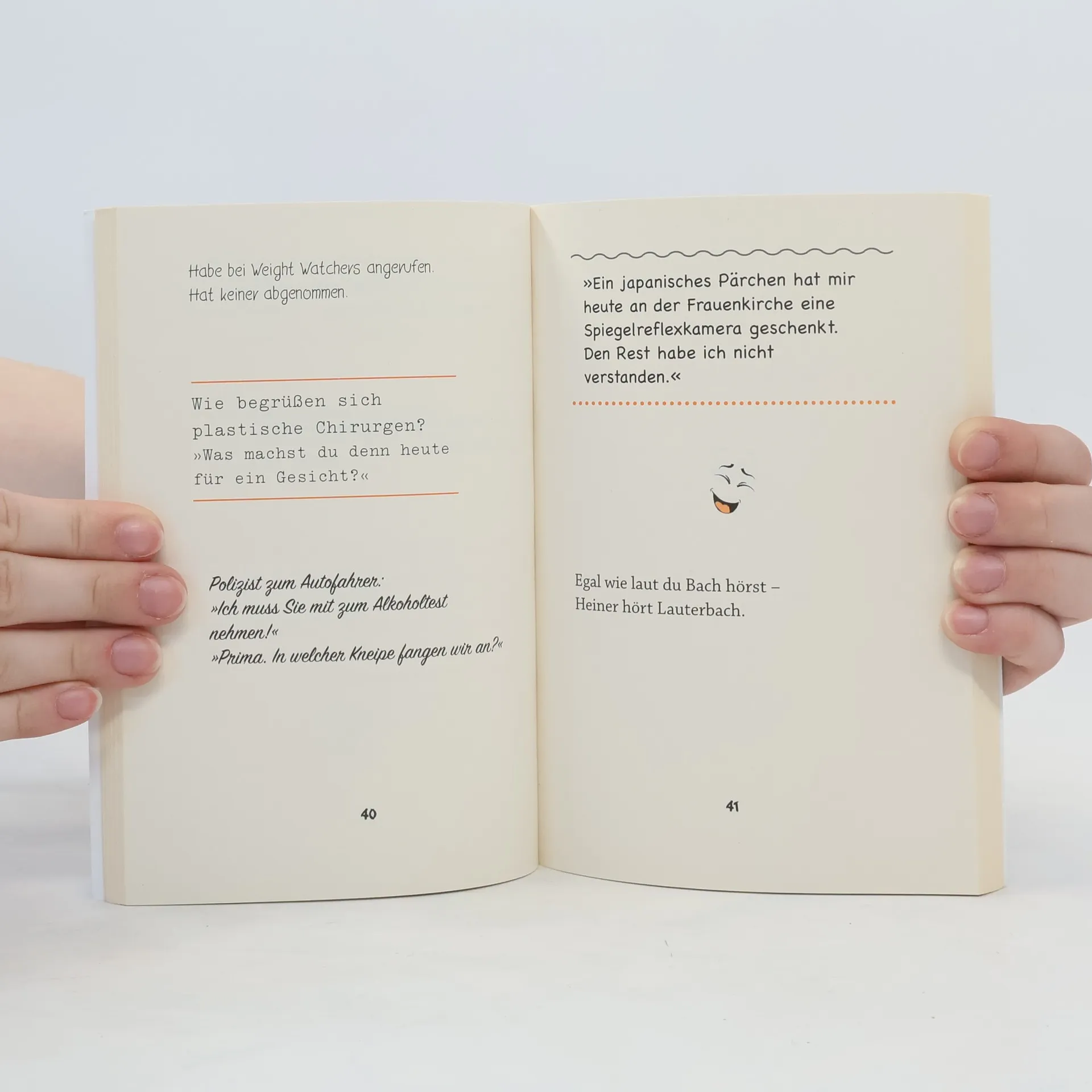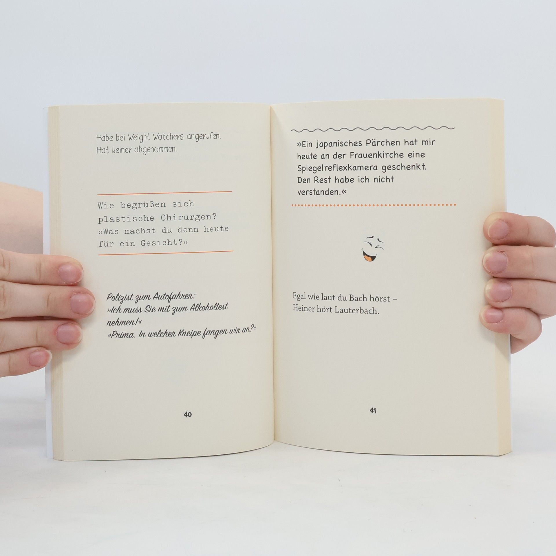 »Ich habe gestern bei Weight Watchers angerufen. Hat keiner abgenommen.« Ha! Ha! Schon wieder einer: schräg, flach und vermeintlich originell. So sind die Witze, die Väter, Opas, Schwiegerväter und Onkel regelmäßig zum Besten geben. Keiner entkommt dem Witzeradar. Und irgendwann muss man dann doch lachen, und ohne sie würde etwas fehlen. Eine Sammlung der besten Kalauer, die dem nächsten Familienabend noch einmal eine ganz eigene Dynamik verleihen wird. Spaß garantiert! Ausstattung: 2-farbig