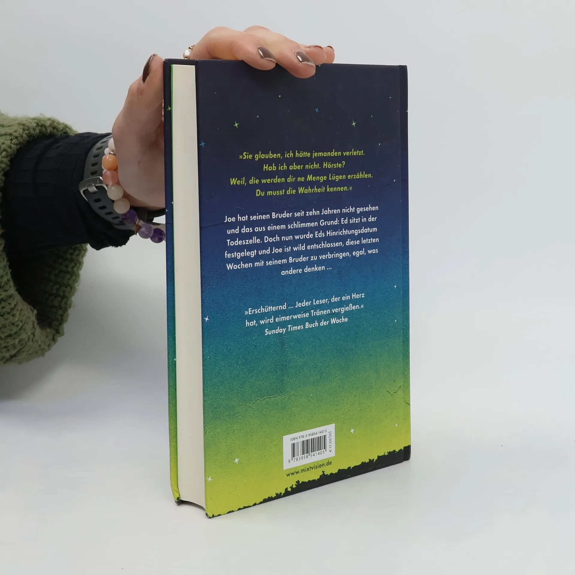 Joe hat seinen Bruder seit zehn Jahren nicht gesehen, und das aus dem schlimmsten aller Gründe. Ed sitzt in der Todeszelle. Aber jetzt wurde Eds Hinrichtungsdatum festgelegt und Joe ist wild entschlossen, diese letzten Wochen mit seinem Bruder zu verbringen, egal, was andere Leute denken ... Geschrieben von Carnegie-Medal-Gewinnerin Sarah Crossan, wirft dieser ergreifende, aufwühlende, großherzige Roman wichtige Fragen auf: Welchen Wert misst man dem Leben bei? Was kann man vergeben? Und wie verabschiedet man sich? „Erschütternd ... Jeder Leser, der ein Herz hat, wird eimerweise Tränen vergießen“ Sunday Times Buch der Woche Gewinner des Deutschen Jugendliterurpreises 2020
