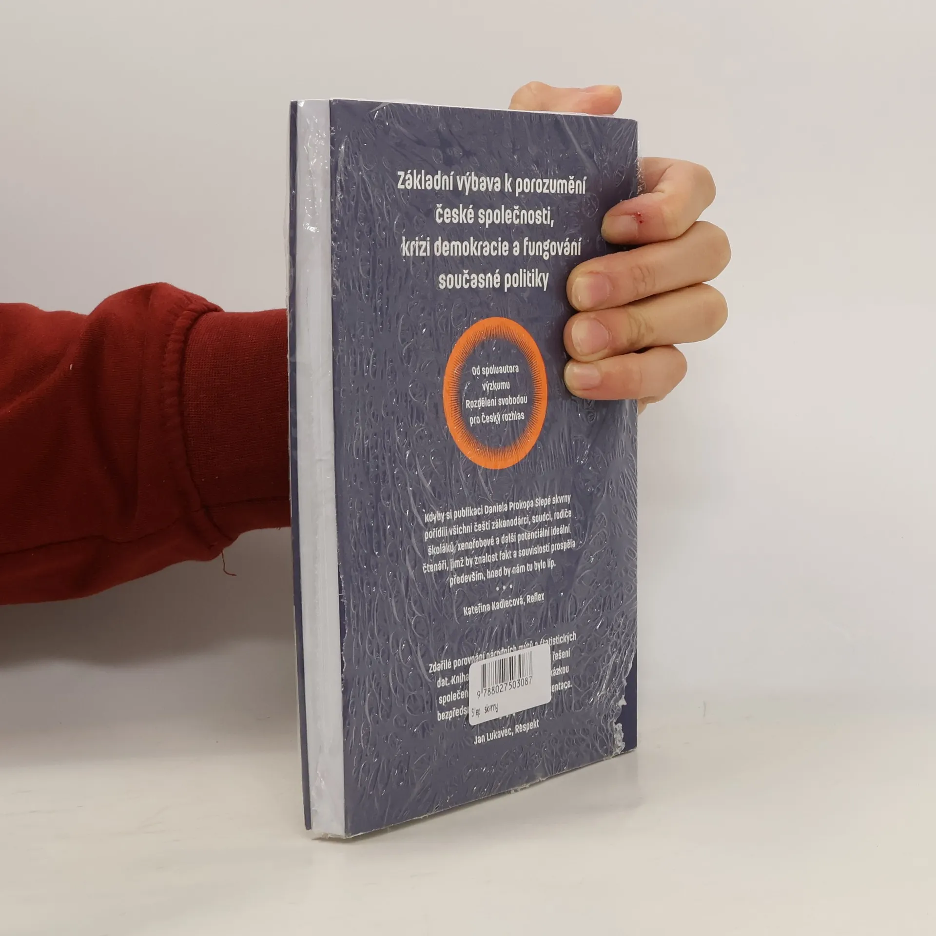 Rozšířené vydání úspěšné sociologické sondy do české společnosti. Základní výbava k porozumění české společnosti, krizi demokracie a fungování současné politiky. Debaty o politice se v Česku často redukují na řešení několika politiků a jejich výroků, hodnotovou introspekci a kulturní války liberálů a konzervativců. Témata, která ovlivňují kvalitu života v Česku, a tím i důvěru v demokracii, však jako by zůstávala v našich slepých skvrnách. Zvlášť v době, kdy jsou politické kampaně postaveny spíše na emocích než na faktech, médii se šíří dezinformace a společnost namísto problémů, jako je budoucnost práce či podoba vzdělávání, řeší bulvární kauzy svých představitelů. Sociolog Daniel Prokop v knize Slepé skvrny pohlíží na problémy a výzvy současného Česka i světa. Neřešená chudoba a exekuce, nerovné vzdělávání a omezené životní šance, nárůst populismu a neschopnost na něj reagovat, mýty o veřejném mínění zastiňující realitu — to vše souvisí s klesající důvěrou Čechů v demokracii a s její životaschopností ve stále složitější realitě.