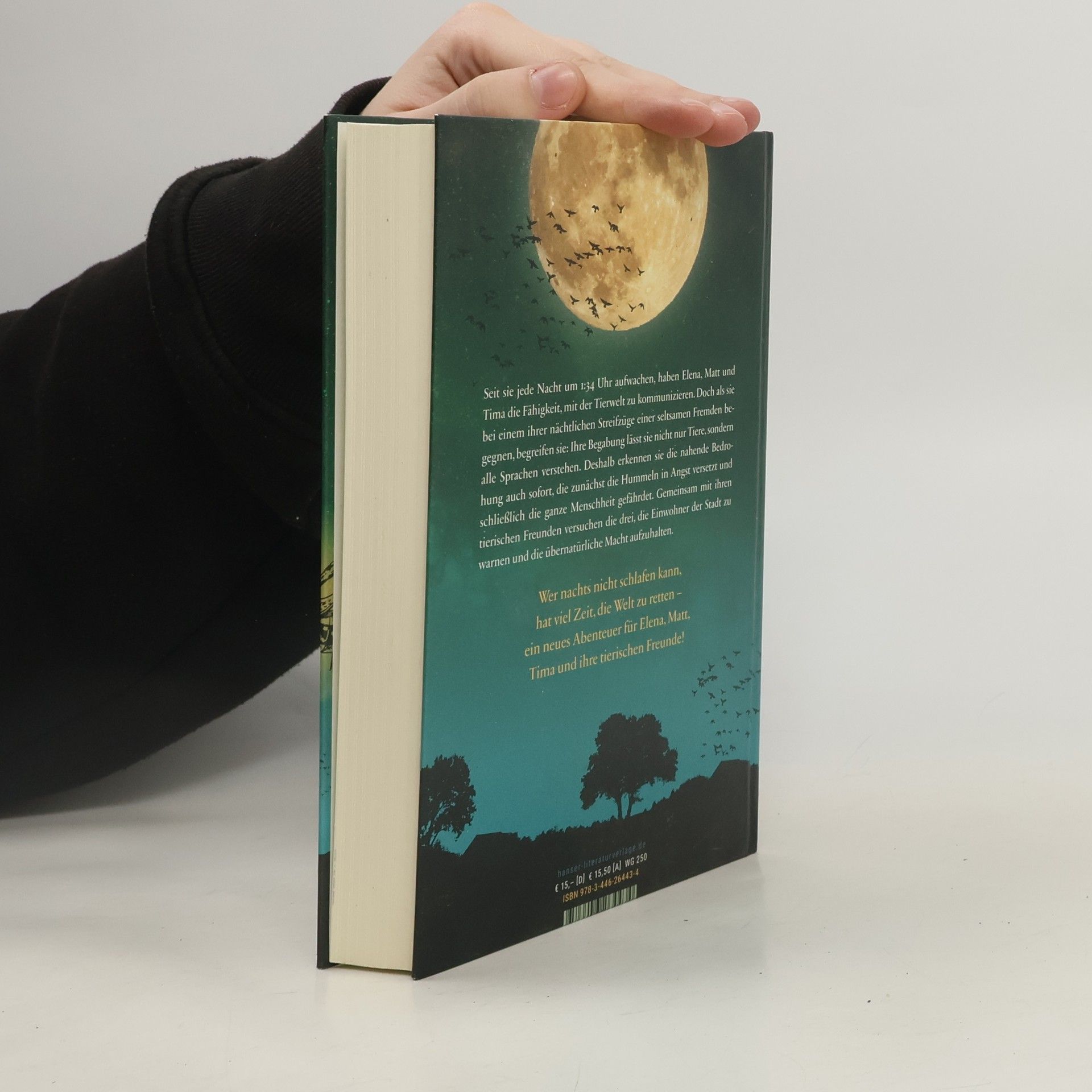 Tier-Fantasy, Action und Höchstspannung in der realen Welt - Band 2 der mitreißenden Reihe von Ali Sparkes. Die schlaflosen Nächte gehen weiter. Es ist 1:34 Uhr. Erneut beginnt der Kampf zwischen Gut und Böse. Seit sie jede Nacht um diese Zeit aufwachen, haben Elena, Matt und Tima die Fähigkeit, mit der Tierwelt zu kommunizieren. Doch als sie bei einem ihrer nächtlichen Streifzüge einer seltsamen Fremden begegnen, begreifen sie: Ihre Begabung lässt sie nicht nur Tiere, sondern alle Sprachen verstehen. Das ermöglicht ihnen, die nahende Bedrohung zu erkennen, die zunächst die Hummeln in Angst versetzt und schließlich die ganze Welt gefährdet: Eine übernatürliche Macht ist dabei, Menschen und Tiere zu vernichten. Gemeinsam mit ihren tierischen Freunden versuchen die drei, die Einwohner der Stadt zu warnen und den gefährlichen Eindringling aufzuhalten.