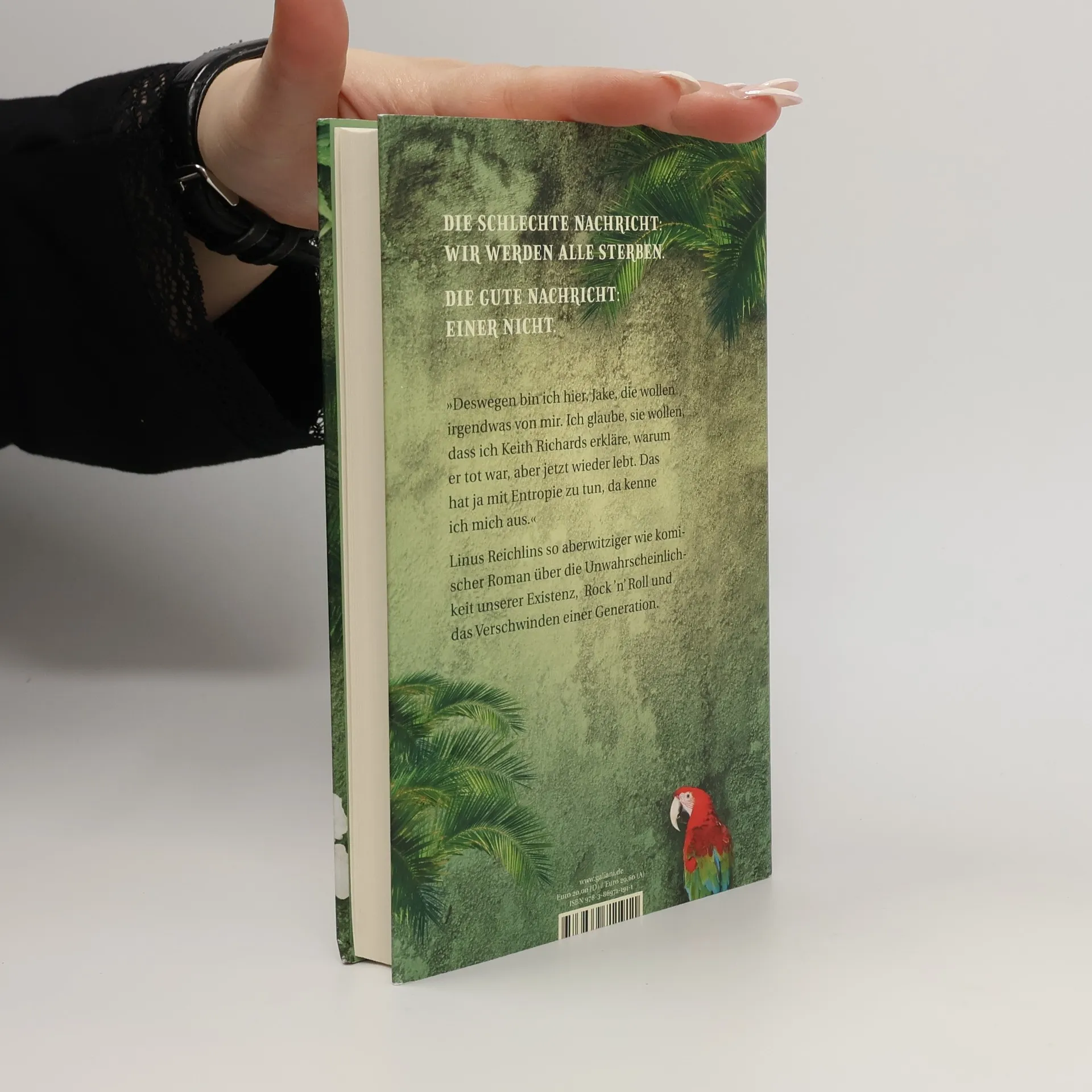 Die schlechte Nachricht: Wir werden alle sterben. Die gute Nachricht: Einer nicht. Linus Reichlins Roman thematisiert die Unwahrscheinlichkeit unserer Existenz und die heilende Wirkung von Whiskey. Fred Hundt, ein Spezialist für Wahrscheinlichkeitstheorie, erklärt Fünftklässlern die Relativität von Zeit und Raum, als sein alter Freund Ben Harper anruft. Die beiden haben sich bei einem risikoreichen Single-Urlaub in der Karibik kennengelernt und geschworen, in Krisensituationen füreinander da zu sein. Ben, ein Arzt für Prominente in Kalifornien, steckt offenbar in einer Krise und will, dass Fred sofort nach L.A. kommt. Fred ist nicht abgeneigt, denn seine Stimmung ist miserabel: Sein Lieblingsmusiker Keith Richards ist gestorben, was für ihn den Beginn des großen Verschwindens markiert. Die Reise zu Ben wird jedoch zu einem Glücksfall. Freds Fachkenntnisse werden auf die Probe gestellt, und er landet schließlich mit Keith Richards höchstpersönlich auf einer einsamen Insel, wo er mit unerwarteten Herausforderungen konfrontiert wird. Reichlins Buch ist grotesk, witzig und klug, und es weckt den Wunsch, viel Musik zu hören und Bourbon zu trinken.