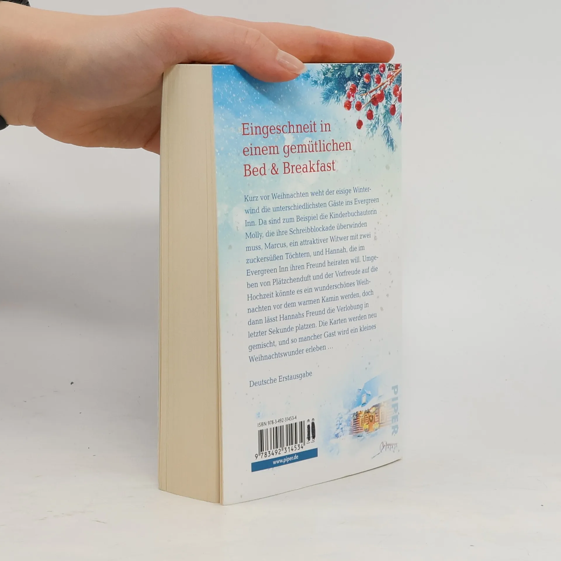 Eingeschneit in einem gemütlichen Bed & Breakfast Kurz vor Weihnachten weht der eisige Winterwind die unterschiedlichsten Gäste ins Evergreen Inn. Da sind zum Beispiel die Kinderbuchautorin Molly, die ihre Schreibblockade überwinden muss, Marcus, ein attraktiver Witwer mit zwei zuckersüßen Töchtern und Hannah, die im Evergreen Inn ihren Freund heiraten will. Umgeben von Plätzchenduft und der Vorfreude auf die Hochzeit könnte es ein wunderschönes Weihnachten vor dem warmen Kamin werden, doch dann lässt Hannahs Freund die Verlobung in letzter Sekunde platzen. Die Karten werden neu gemischt, und so mancher Gast wird ein kleines Weihnachtswunder erleben … Machen Sie es sich gemütlich, diese Weihnachtslektüre wird Sie verzaubern! Colleen Wright erzählt in ihrem winterlichen Liebesroman die herzerwärmenden Geschichten der verschiedenen Gäste eines kleinen Bed & Breakfast-Hotels im verschneiten Vermont, die alle eine zweite Chance auf Liebe bekommen. Die perfekte Wohlfühllektüre für kuschelige Wintertage vor dem Kamin. Colleen Wright wuchs in Michigan auf, wo sie es sich zu Weihnachten gerne mit einem guten Buch am Feuer gemütlich machte. Heute lebt und arbeitet sie in Brooklyn.