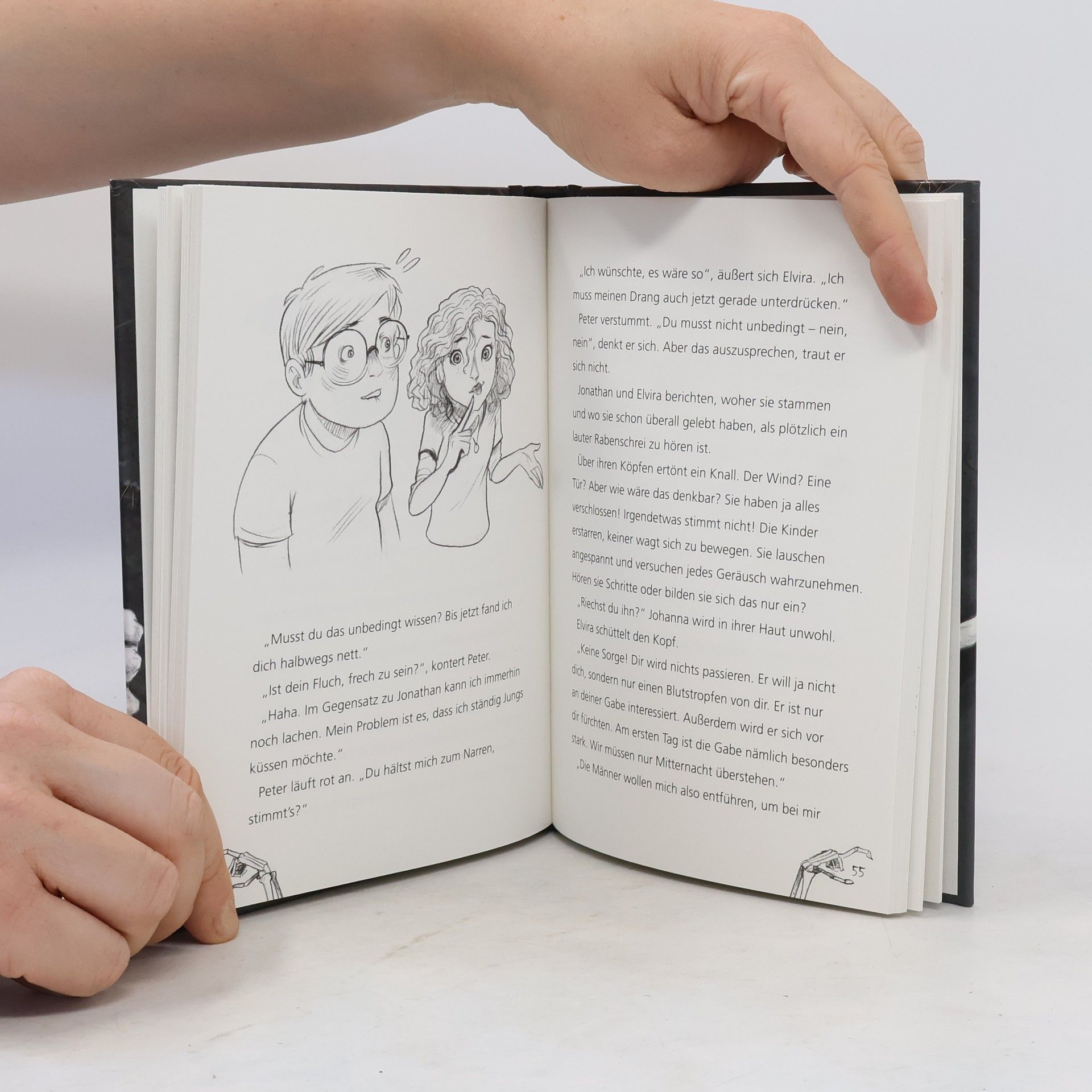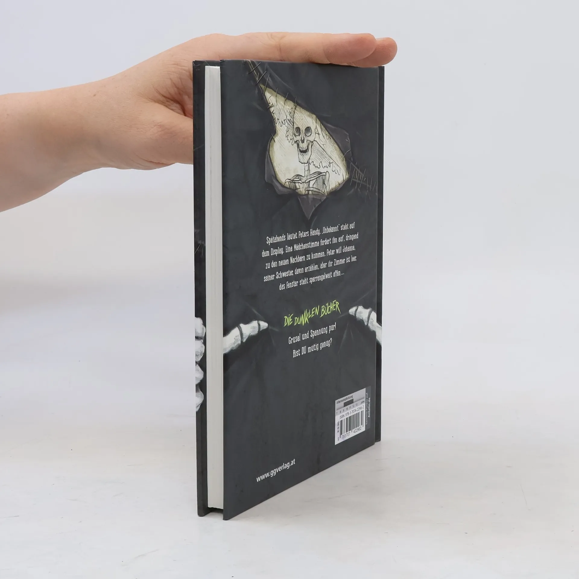 Ein altes, efeuumranktes Haus – und neue Nachbarn Neue Nachbarn – etwas zu spionieren, schadet niemandem. Doch als Johanna beobachtet, wie sich anscheinend der Nachbarhund, oder ist es gar ein Wolf, in nichts aufgelöst hat und eine Ziege an seiner Stelle steht, sind sie und ihr Bruder Peter alarmiert. Und plötzlich seht da ein Junge auf ihrer Terrasse und stellt sich als neuer Nachbar vor. Er wirkt unheimlich. Spätabends läutet Peters Handy. „Unbekannt“ steht auf dem Display. Eine Mädchenstimme fordert ihn auf, dringend zu den Nachbarn zu kommen. Peter will Johanna davon erzählen, aber ihr Zimmer ist leer, das Fenster steht sperrangelweit offen …