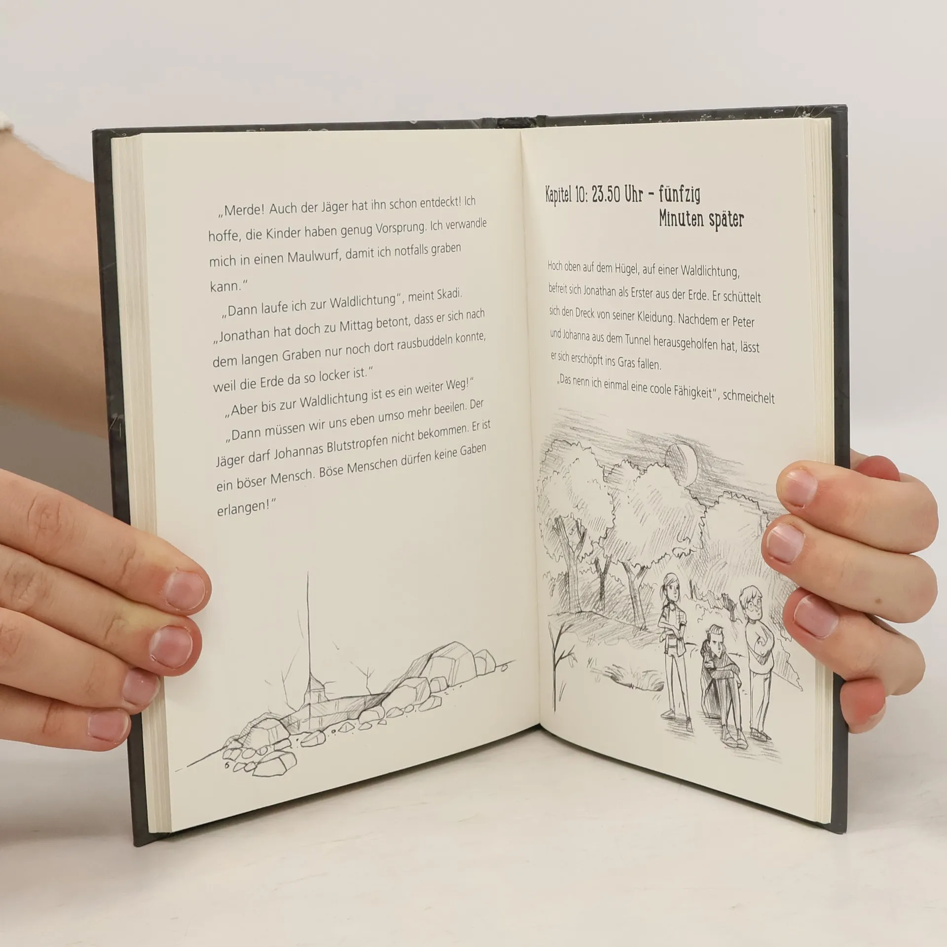 Ein altes, efeuumranktes Haus – und neue Nachbarn Neue Nachbarn – etwas zu spionieren, schadet niemandem. Doch als Johanna beobachtet, wie sich anscheinend der Nachbarhund, oder ist es gar ein Wolf, in nichts aufgelöst hat und eine Ziege an seiner Stelle steht, sind sie und ihr Bruder Peter alarmiert. Und plötzlich seht da ein Junge auf ihrer Terrasse und stellt sich als neuer Nachbar vor. Er wirkt unheimlich. Spätabends läutet Peters Handy. „Unbekannt“ steht auf dem Display. Eine Mädchenstimme fordert ihn auf, dringend zu den Nachbarn zu kommen. Peter will Johanna davon erzählen, aber ihr Zimmer ist leer, das Fenster steht sperrangelweit offen …