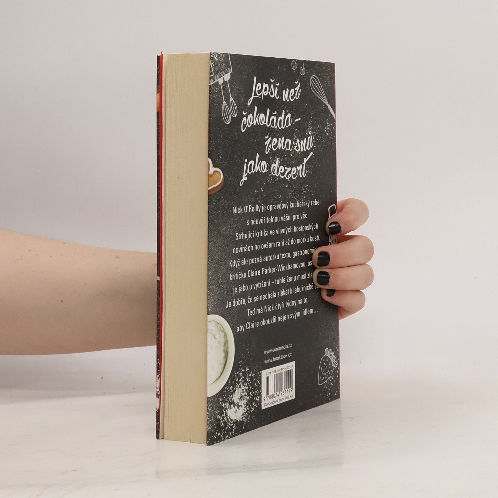 Lepší než čokoláda – žena snů jako dezert. Nick O´Reilly je opravdový kuchařský rebel s neuvěřitelnou vášní pro věc. Strhující kritika ve vlivných bostonských novinách ho ovšem raní až do morku kostí. Když ale pozná autorku, gastronomickou kritičku Claire Parker-Wickhamovou, je jako u vytržení – tuhle ženu musí získat! Je dobře, že se nechala zlákat k labužnické sázce. Teď má Nick čtyři týdny na to, aby Claire okouzlil nejen svým jídlem… Volně navazuje na předchozí titul kulinářské série Tajná přísada Láska.