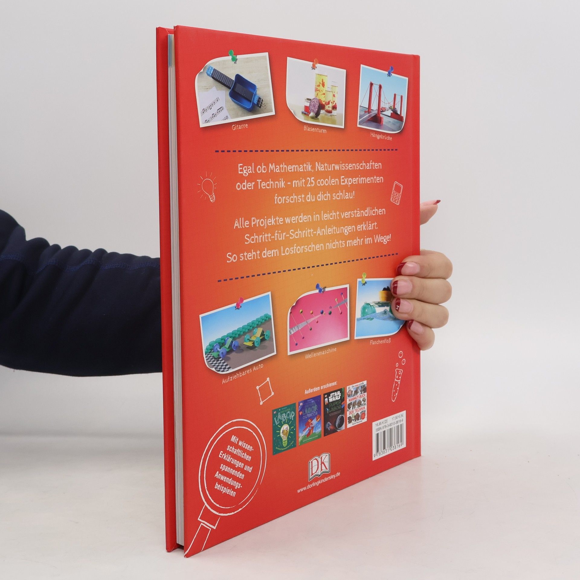 Coole Experimente für Kinder. So macht Forschen Spaß! 25 geniale Experimente wecken den Forschergeist der Kinder. In anschaulichen Schritt-für-Schritt-Anleitungen und mit einfachen Materialien entstehen Windmühle, Thermoskanne und Hängebrücke. Spielerisch lernen junge Forscher ab 10 Jahren die Grundlagen der Naturwissenschaft und Technik kennen. Das macht nicht nur stolz, sondern auch fit für die MINT-Fächer ! Dazu gibt es spannendes Hintergrundwissen und praktische Anwendungsbeispiele . Naturwissenschaften für Kinder leicht verständlich. Der populäre britische Arzt und DK Erfolgsautor Robert Winston vermittelt seine Leidenschaft für Wissenschaft nicht nur in diversen TV-Wissensshows, sondern auch in der erfolgreichen Super-Labor-Reihe . Nach „Das Super-Labor“ und „Das Super-Labor Outdoor“ richtet sich dieses Kindersachbuch speziell an junge Forscher-Profis . Mit anspruchsvollen Projekten, Hintergrundinformationen zu wissenschaftlichen Phänomenen und praktischen Beispielen aus der Realität weckt er die Neugier auf Naturwissenschaften, Technik und Mathematik und macht sie für Kinder verständlich. Das sind die Highlights aus dem Experimente-Buch für junge Tüftler: • Fordernde Projekte: 25 Experimente aus der atemberaubenden Welt der Wissenschaften. • Klare Anleitungen: Leicht verständliche Anleitungen und anschauliche Fotos erläutern die Experimente Schritt für Schritt. • Unkompliziertes Material: Es werden überwiegend Alltagsgegenstände aus dem Haushalt benötigt. • Drei Schwierigkeitsstufen. • Schlaues Hintergrundwissen zu Theorien und Phänomenen. • Praktische Anwendungsbeispiele aus Alltag, Natur und Wissenschaft. Geniale Aktivitäten für Kids: 1. Kapitel: Kräfte und Bewegungen, z. B. ein aufziehbares Auto oder eine Windturbine. 2. Kapitel: Flüssigkeiten und chemische Reaktionen, z. B. eine selbstgebaute Thermoskanne. 3. Kapitel: Formen und Strukturen, z. B. ein stabiler Turm aus Spaghetti. 4. Kapitel: Licht und Schall, von einem Spektroskop bis zu einer selbst gebauten Gitarre. Ausprobieren, experimentieren & lernen – die Welt der Naturwissenschaften zum Anfassen und selbst entdecken! Spaß, Action und toller Lerneffekt garantiert!