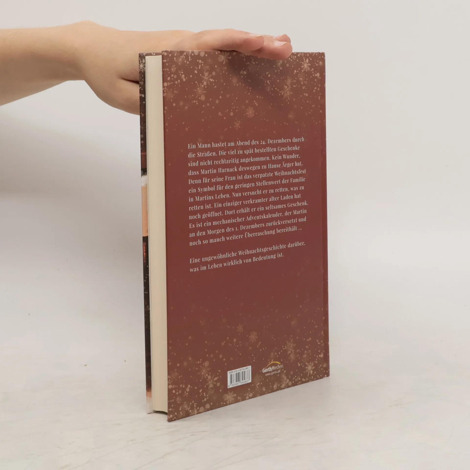 Martin Harnack hastet am späten Abend des 24. Dezembers durch die Straßen. Die viel zu spät bestellten Geschenke sind nicht angekommen. Seine Frau hat ihm gerade eine Szene gemacht, denn für sie ist das verpatzte Weihnachtsfest ein Symptom für den geringen Stellenwert der Familie in Martins Leben. Nun versucht er zu retten, was zu retten ist. Ein einziger verkramter alter Laden hat noch offen. Dort erhält er ein seltsames Geschenk. Es ist ein mechanischer Adventskalender, der Martin an den Morgen des 1. Dezembers zurückversetzt und noch so manch weitere Überraschung bereithält ... Eine ungewöhnliche Weihnachtsgeschichte darüber, was im Leben wirklich von Bedeutung ist.