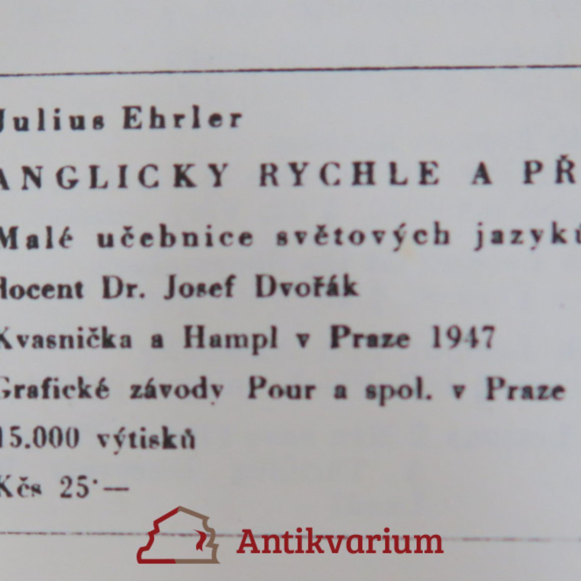 Anglicky rychle a přehledně : Praktická učebnice hovorové angličtiny pro samouky a kursy, Julius Ehrler