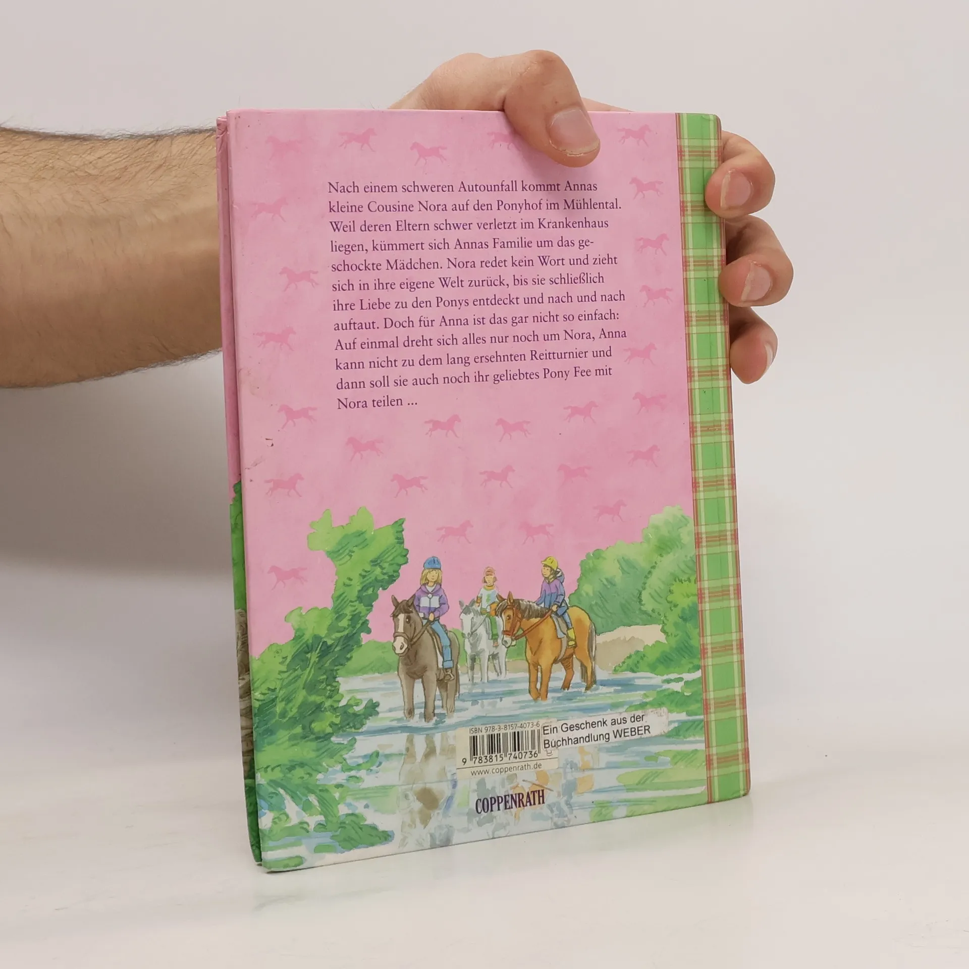 Nach einem Autounfall kommt Annas kleine Cousine Nora auf den Ponyhof im Mühlental und Annas Familie kümmert sich um das geschockte Mädchen. Doch nichts scheint zu helfen, bis Nora schließlich ihre Liebe zu den Ponys entdeckt und nach und nach auftaut. Gar nicht so einfach für Anna: Auf einmal dreht sich alles nur noch um Nora. Anna kann nicht zu dem lang ersehnten Reitturnier und dann soll sie auch noch ihr geliebtes Pony Fee mit Nora teilen ... Band 2 der erfolgreichen Ponyhof-Mühlental-Reihe von Sarah Bosse, neu illustriert von Cathy Ionescu
