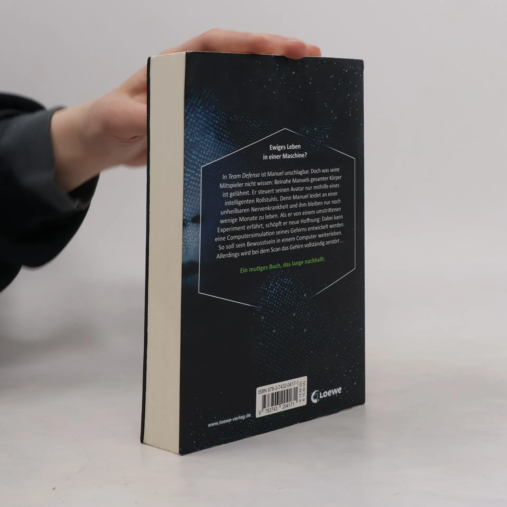 Das Buch ist bei deiner Buchhandlung vor Ort und bei vielen Online-Buchshops erhältlich! Ewiges Leben in einer Maschine? Manuel ist im Team Defense unschlagbar, doch seine Mitspieler wissen nicht, dass sein Körper fast vollständig gelähmt ist. Er steuert seinen Avatar mithilfe eines intelligenten Rollstuhls, da er an einer unheilbaren Nervenkrankheit leidet und nur noch wenige Monate zu leben hat. Als er von einem umstrittenen Experiment erfährt, schöpft er neue Hoffnung: Eine Computersimulation seines Gehirns könnte sein Bewusstsein in einem Computer weiterleben lassen. Doch der Scan zerstört das Gehirn vollständig. „Nofinity hat sich vorgenommen, das größte Problem der Menschheit zu lösen: den Tod.“ Ist das ein Scherz? „Ihr wollt Menschen unsterblich machen?“, fragt Elena. „Nicht im wörtlichen Sinn. Aber wir können das Lebensalter drastisch erhöhen – von über hundert auf viele tausend Jahre.“ „Das klingt wie Science-Fiction.“ „Das ist Science-Fiction – noch. Aber wir sind auf dem Weg dorthin bereits weit fortgeschritten.“ „Wie genau soll das funktionieren?“ „Indem wir den menschlichen Geist aus dem Körper herausholen und in ein langlebigeres, reparierbares Gefäß übertragen.“ „In eine Maschine.“ Der Autor, Karl Olsberg, hat über künstliche Intelligenz promoviert, war Unternehmensberater und gründete mehrere Start-ups. Sein erster Roman schaffte es auf die Spiegel-Bestsellerliste. Er lebt mit seiner Familie in Hamburg.