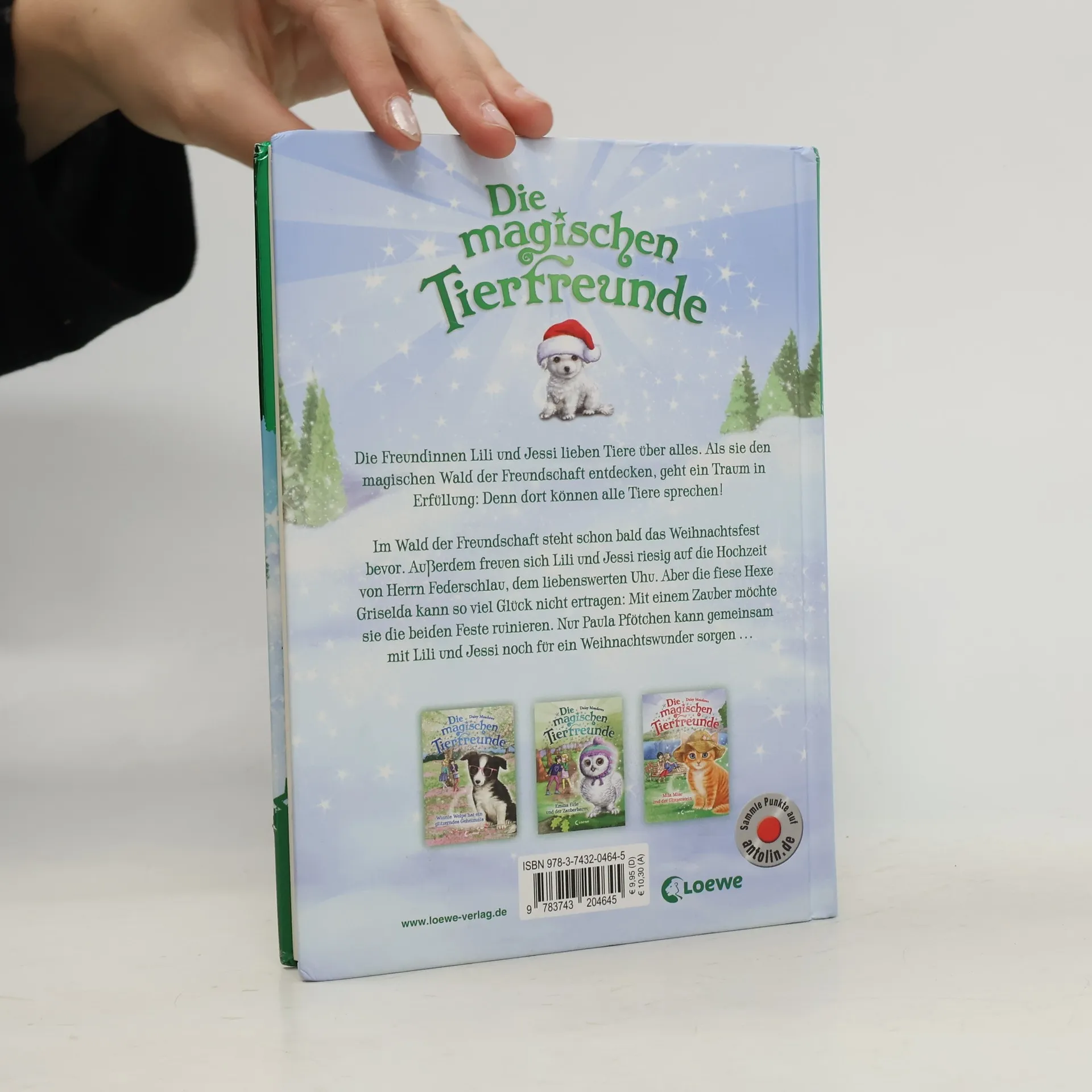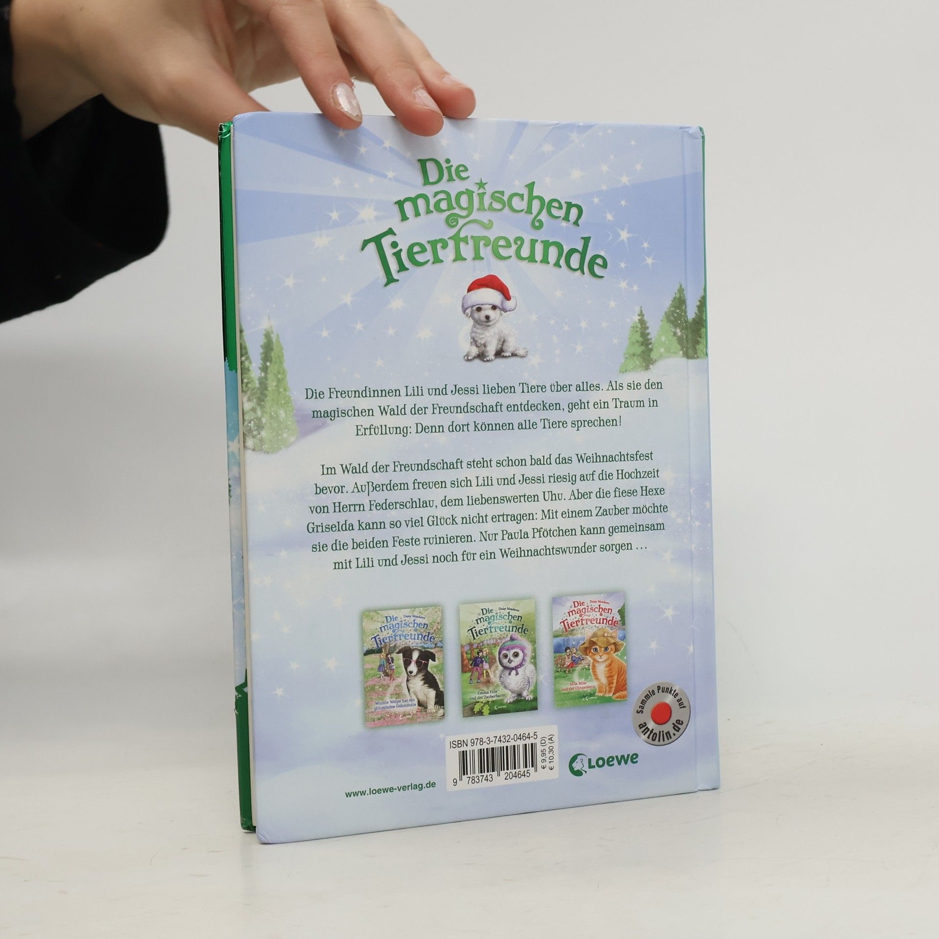 Im Wald der Freundschaft steht das große Weihnachtsfest bevor. Außerdem freuen sich Lili und Jessi riesig auf die Hochzeit von Herrn Federschlau, dem liebenswerten Uhu. Aber die fiese Hexe Griselda kann so viel Glück nicht ertragen: Mit einem Zauber möchte sie die beiden Feste ruinieren. Nur Paula Pfötchen kann gemeinsam mit Lili und Jessi noch für ein Weihnachtswunder sorgen … Ein stimmungsvoller Weihnachtsband rund um einen kleinen Hundewelpen – drei zusammenhängende Geschichten zur wohl schönsten Zeit des Jahres. Magische und zauberhafte Geschichten mit zahlreichen liebenswerten Illustrationen, die jedes Kinderherz ab 7 Jahren höher schlagen lassen. Die Freundinnen Lili und Jessi folgen einer geheimnisvollen Katze in den Wald der Freundschaft. Dort können alle Tiere sprechen und gemeinsam erleben sie spannende Abenteuer. Durch die kurzen Kapitel eignet sich die Reihe besonders für Leseanfänger. Tierpflegetipps runden die Geschichten um Die magischen Tierfreunde perfekt ab. Die komplette Buchreihe Die magischen Tierfreunde ist auf Antolin. de gelistet.