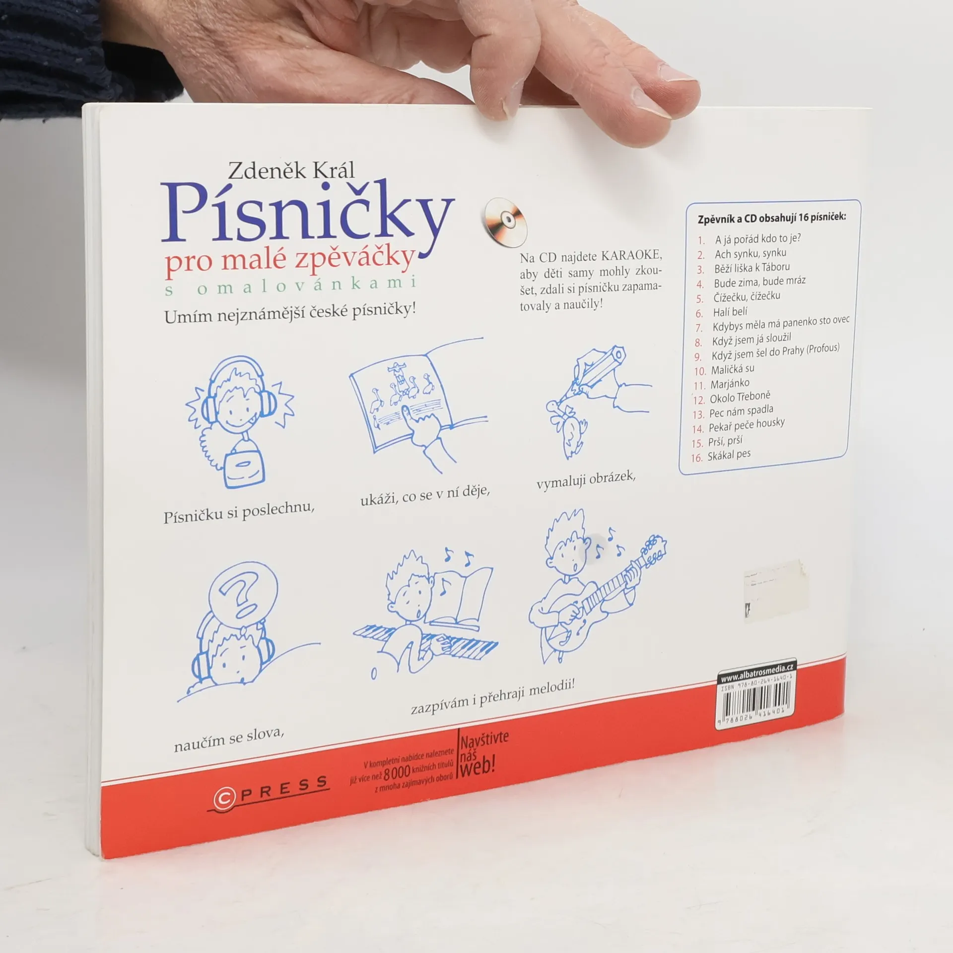 Obsahuje 16 známých písniček s texty a notací