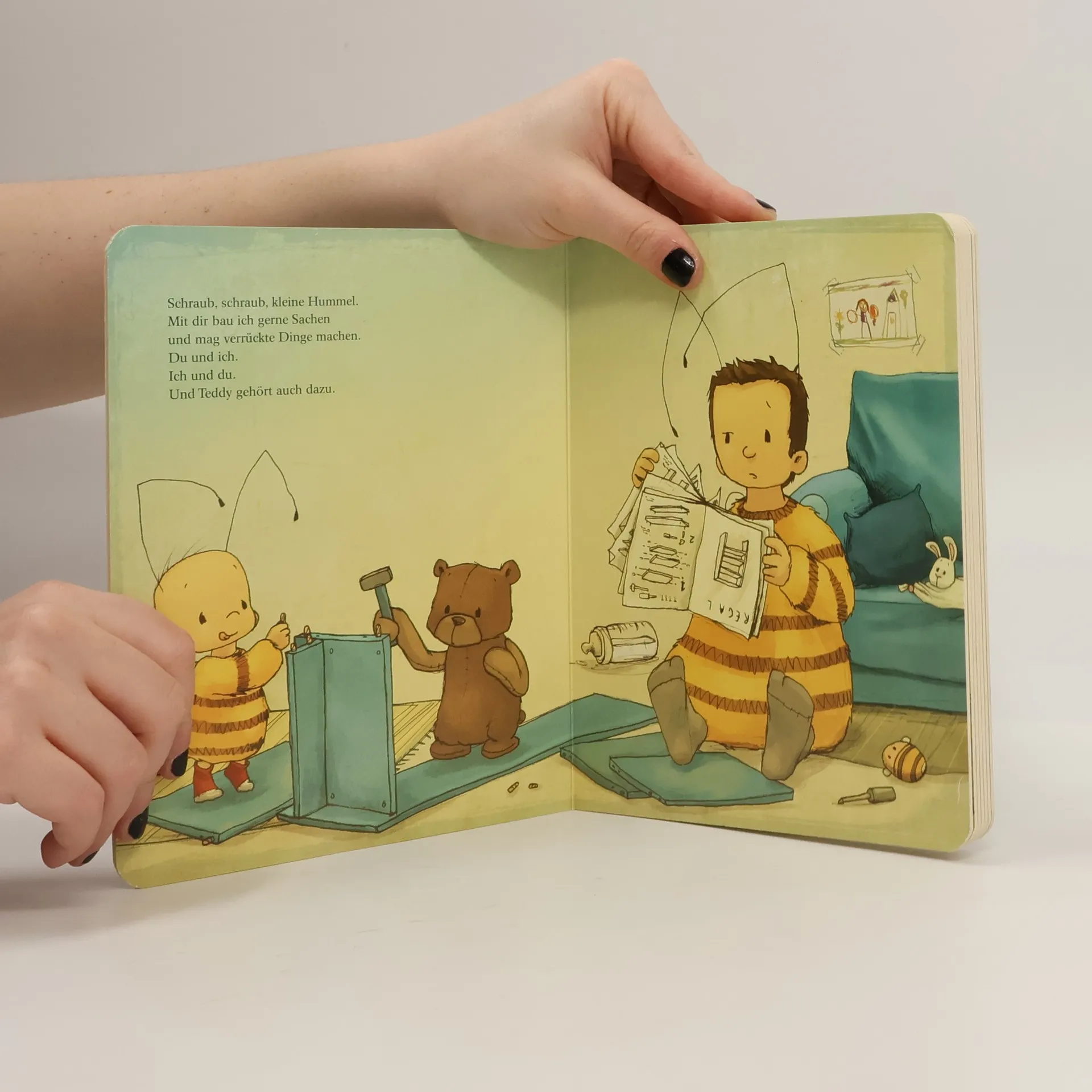 Ein emotionales Liebhabenbuch Nach dem großen Erfolg von „Die Baby Hummel Bommel – Gute Nacht“ haben sich die Bestsellerautorinnen Britta Sabbag und Maite Kelly ein neues, wunderbares Bilderbuch um die Baby Hummel ausgedacht, das Joëlle Tourlonias liebevoll illustriert hat. Eine rührende Vorlesegeschichte in Reimen, für alle, die ihren kleinen Hummeln sagen wollen: Ich hab dich lieb! Das handliche, kleine Format und die stabilen Seiten machen dieses Pappbilderbuch zu einem ganz besonderen Geschenk – für alle Fans der „Kleinen Hummel Bommel“ und der „Baby Hummel Bommel“. „Poch, poch, kleine Hummel. Unsere Herzen sind wie eins, deins ist meins und meins ist deins. Du und ich. Ich und du. Und Teddy gehört auch dazu.“ • Rührende Liebhabengeschichte: In eingängigen, kleinen Reimen erzählt • Von den Bestsellerautorinnen Britta Sabbag und Maite Kelly • Zahlreiche Erzählanlässe: Kuschelige Vorlesezeit garantiert • Perfekt für kleine Kinderhände: Dicke Pappseiten und handliches Format • Geprüfte Qualität: Das Buch unterliegt strengen Sicherheitsanforderungen und regelmäßigen Qualitätskontrollen nach europäischer Spielzeugsicherheitsrichtlinie