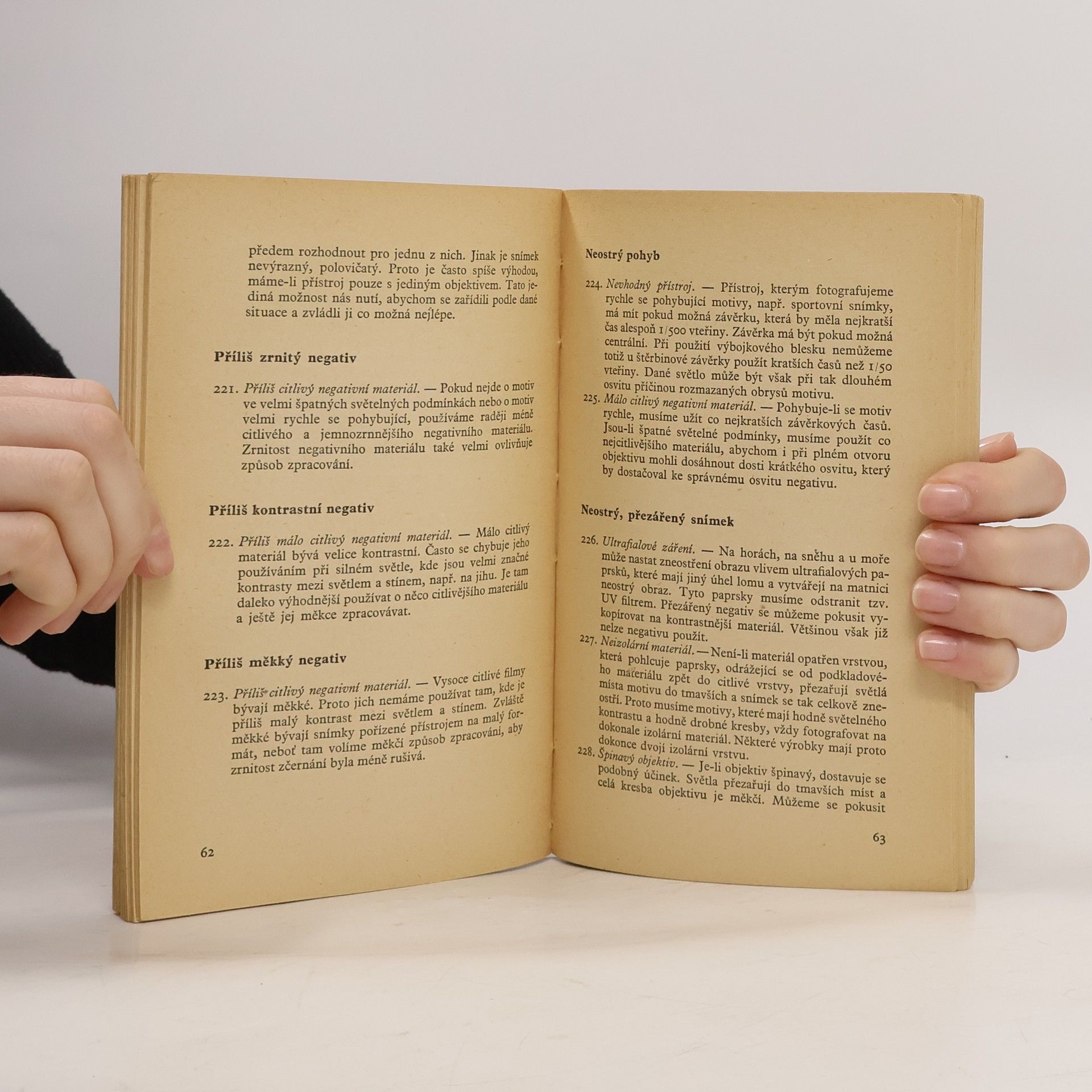 Přehledně uspořádaná publikace vypočítává, popisuje a vysvětluje nejrůznější vady a nedostatky v amatérské fotografii od zakoupení fotografického přístroje až k hotovému snímku a jeho úpravě.