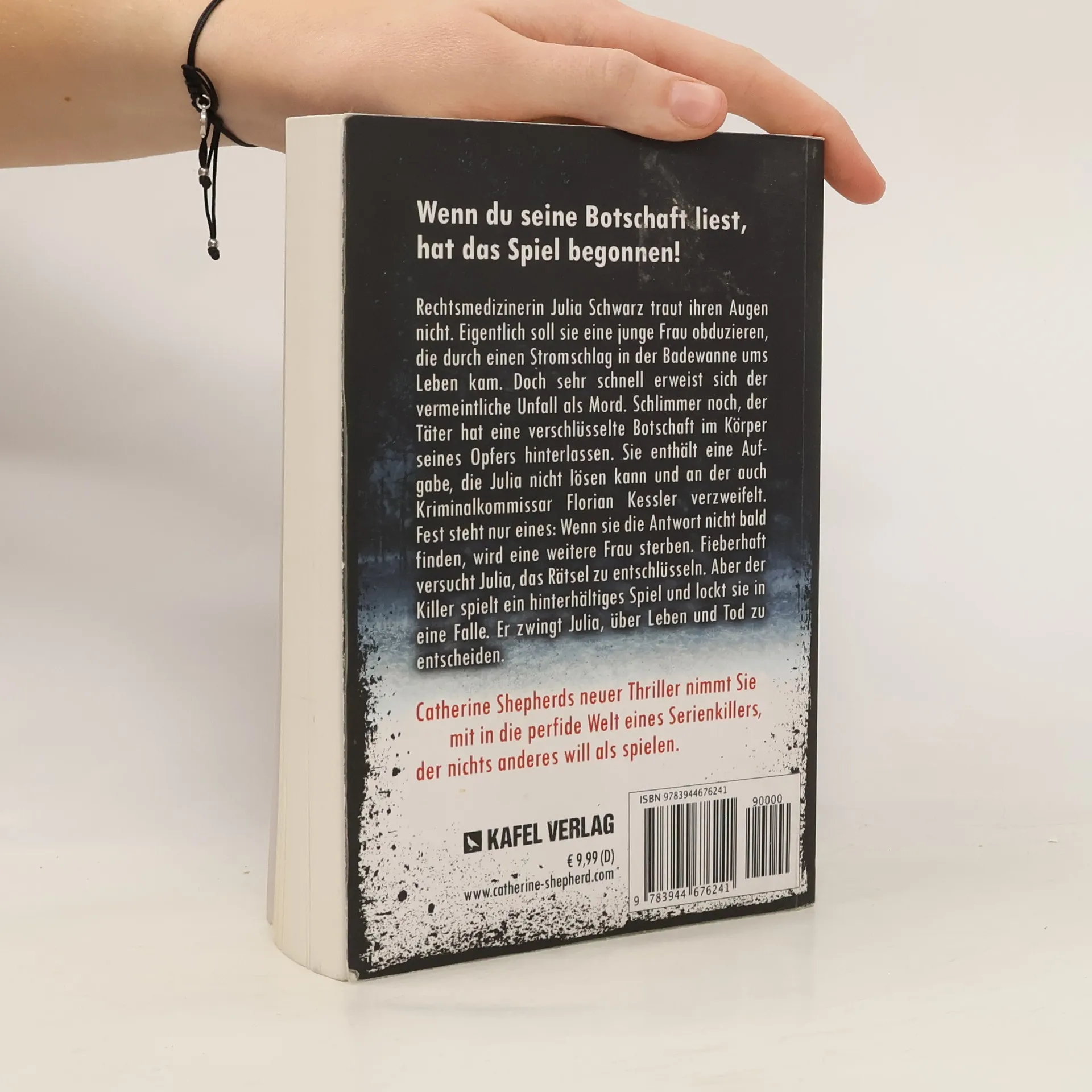 Wenn du seine Botschaft liest, hat das Spiel begonnen! Rechtsmedizinerin Julia Schwarz traut ihren Augen nicht. Eigentlich soll sie eine junge Frau obduzieren, die durch einen Stromschlag in der Badewanne ums Leben kam. Doch sehr schnell erweist sich der vermeintliche Unfall als Mord. Schlimmer noch, der Täter hat eine verschlüsselte Botschaft im Körper seines Opfers hinterlassen. Sie enthält eine Aufgabe, die Julia nicht lösen kann und an der auch Kriminalkommissar Florian Kessler verzweifelt. Fest steht nur eines: Wenn sie die Antwort nicht bald finden, wird eine weitere Frau sterben. Fieberhaft versucht Julia, das Rätsel zu entschlüsseln. Aber der Killer spielt ein hinterhältiges Spiel und lockt sie in eine Falle. Er zwingt Julia, über Leben und Tod zu entscheiden.