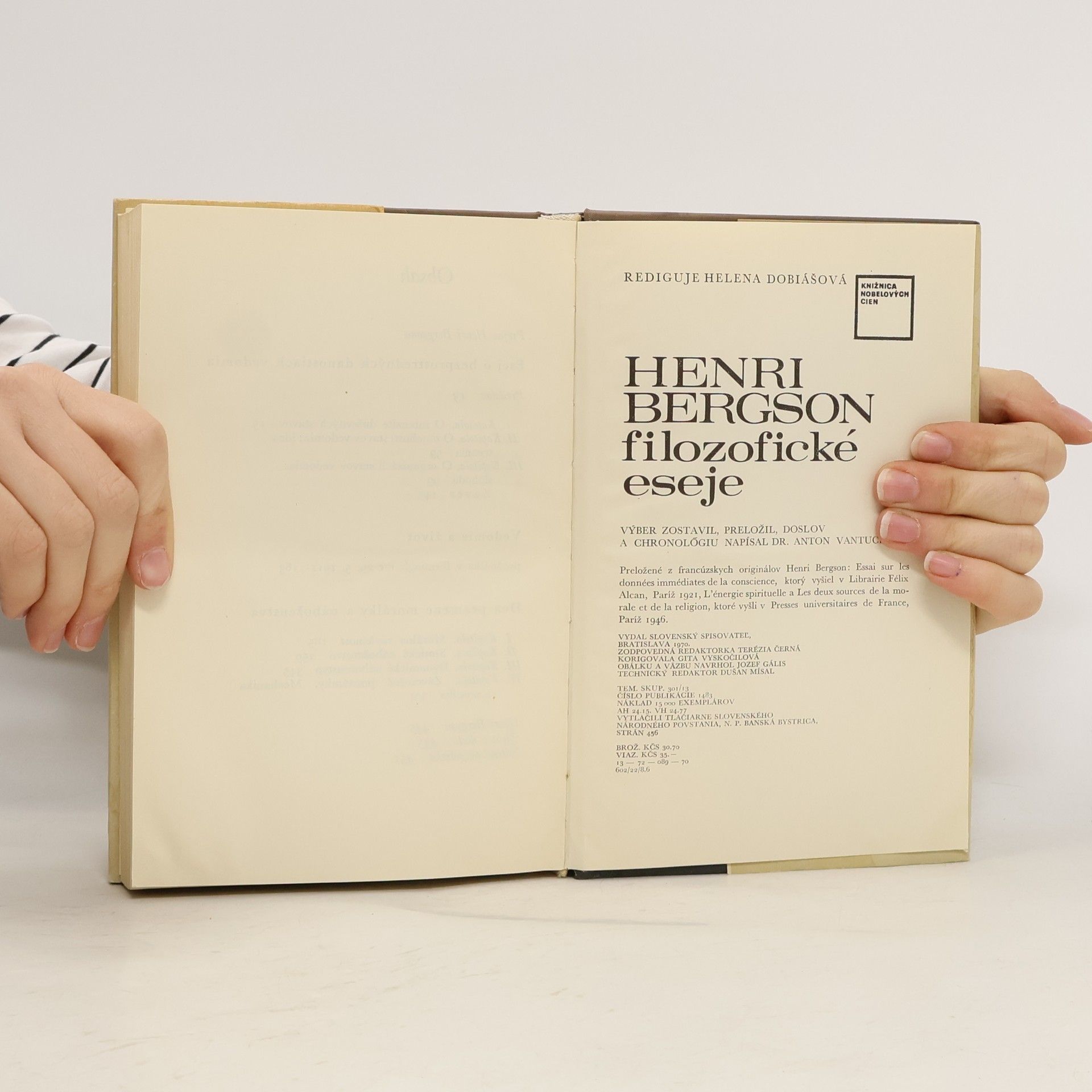 Filozofické dielo francúzskeho autora: Esej o bezprostredných danostiach vedomia, Dva pramene morálky a náboženstva, Vedomie a život. Obsahuje prejav H. Bergsona pri preberaní Nobelovej ceny za literatúru.