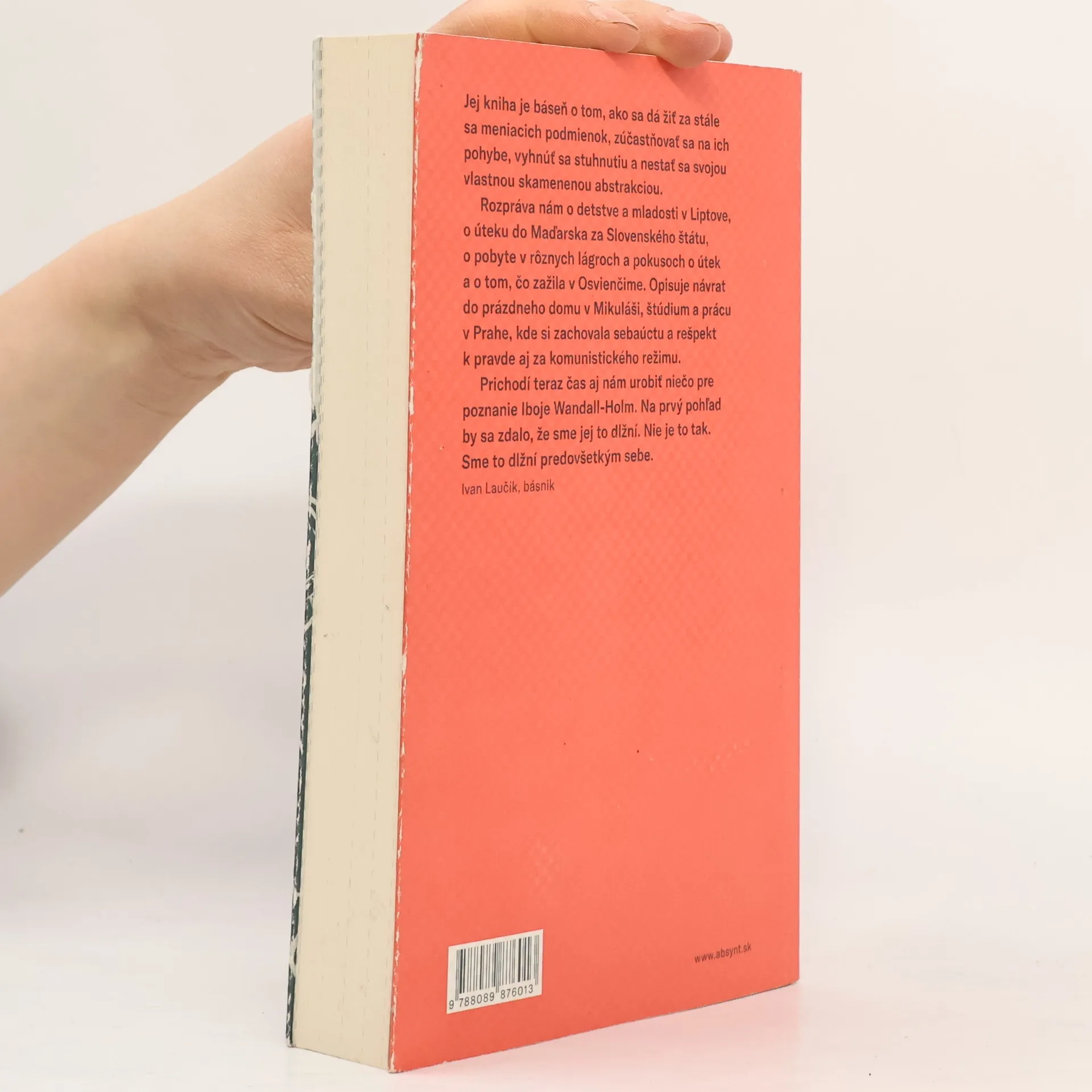 V roku 1942 utiekla ako devätnásťročná zo Slovenského štátu do Maďarska. Prežila Osvienčim i pochod smrti do Ravensbrücku a o svojom osude, ale aj o osude vojnovej Európy napísala túto úžasnú knihu, ktorá bola v roku 2001 v Dánsku vyhlásená za knihu roka. Iboja Wandall-Holm, dánska spisovateľka, vyrástla v predvojnovom Liptovskom Mikuláši. Po začiatku deportácií židovských obyvateľov do vyhladzovacích táborov utiekla spolu so svojimi dvomi mladšími sestrami do Maďarska. Tri mladé dievčatá tak postihlo neželané kruté „dobrodružstvo“, ktoré ich povodilo špinou, ostnatým drôtom a nemerateľným utrpením vojnovej Európy. Moruša Iboje Wandall-Holm je dôležitým kamienkom do mozaiky dejín vojnového Slovenského štátu i tragédie slovenských Židov. Nie je však len o tom, nie je len rozprávaním o vojne a pekle koncentrákov. Je aj o nádeji, o láske, o nesmiernej cene ľudského života i o obrovskej túžbe žiť a neprestať byť človekom.