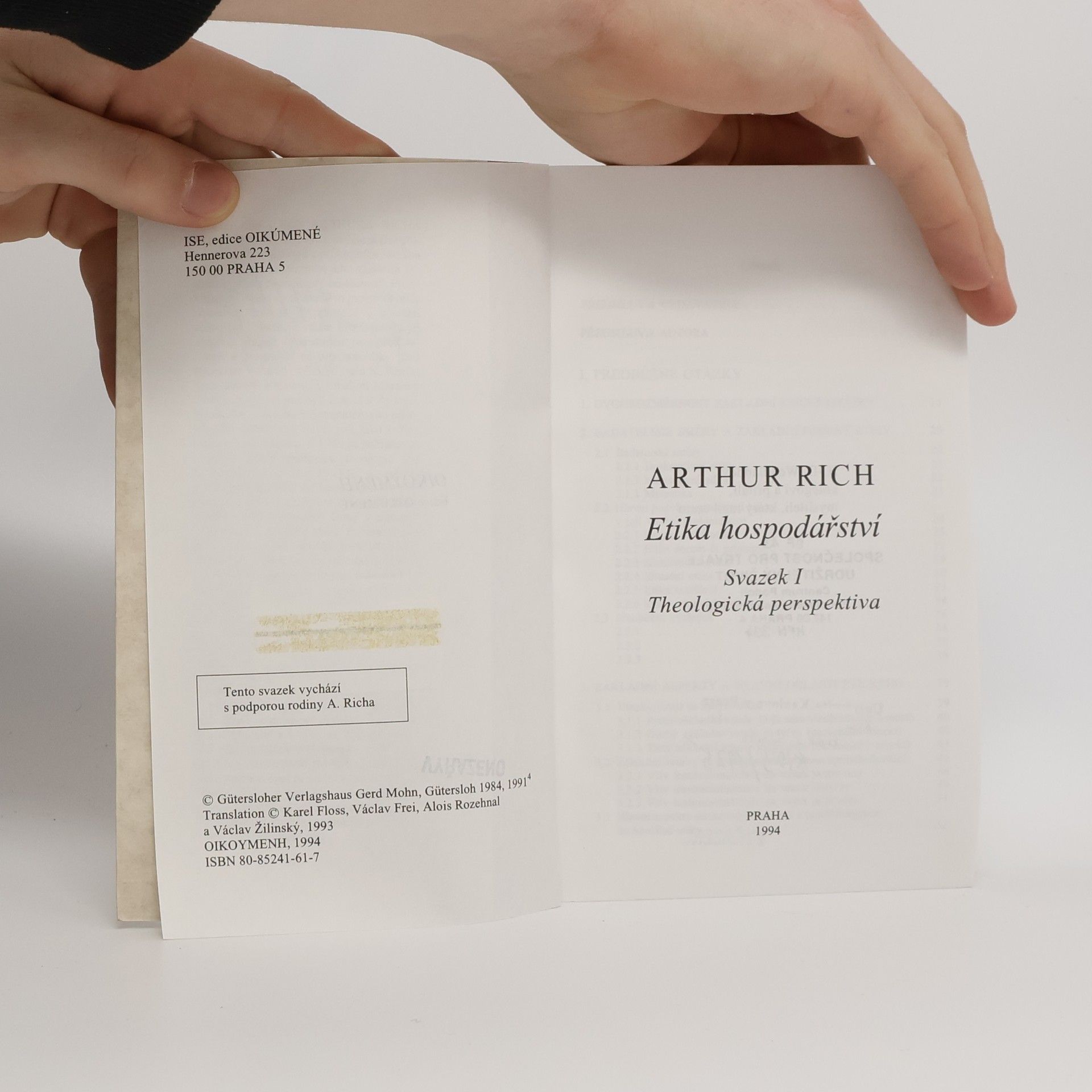 Etika hospodářství. Svazek I, Theologická perspektiva, Arthur Rich, Karel Floss