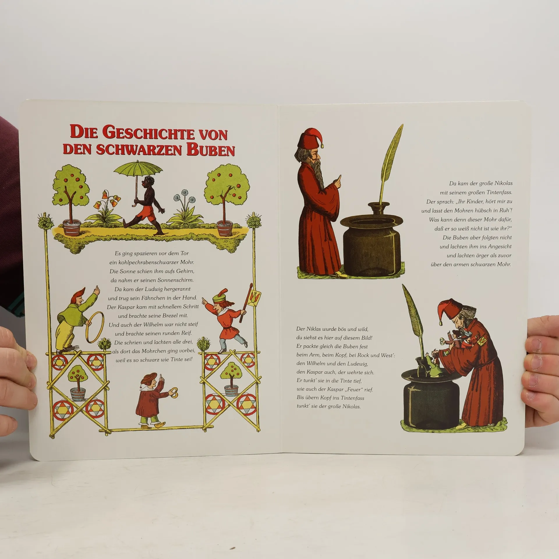 1844 suchte der Arzt Heinrich Hoffmann ein Bilderbuch als Weihnachtsgeschenk für seinen dreijährigen Sohn Carl, fand jedoch nichts Passendes. In einem späteren Bericht erinnerte sich Hoffmann, dass er auf lange Erzählungen und moralische Geschichten stieß, die für Kinder in diesem Alter ungeeignet waren. Schließlich kehrte er mit einem leeren Schreibheft zurück und beschloss, selbst ein Bilderbuch zu erstellen. Das Geschenk erfreute seinen Sohn und erregte das Interesse seiner Freunde, die ihn drängten, das Werk zu veröffentlichen. Anfangs zögerte er, doch sein Freund, der Verleger Zacharias Löwenthal, überzeugte ihn. 1845 erschien das Buch erstmals unter dem Titel „Lustige Geschichten und drollige Bilder für Kinder von 3–6 Jahren“ und ab der vierten Auflage (1847) als „Struwwelpeter“. Das Buch erzählt von ungehorsamen Kindern, die für ihr Fehlverhalten bestraft werden, wie der „bitterböse Friederich“, der von einem Hund gebissen wird, oder Paulinchen, die durch das Spielen mit Streichhölzern verbrennt. Es gibt auch die Geschichte eines Hasen, der sich gegen einen Jäger wehrt. Namen wie Zappelphilipp und Suppenkaspar sind in die deutsche Sprache eingegangen, und Textpassagen wie „Konrad“ sprach die Frau Mama, „ich geh aus und Du bleibst da“ sind heute allgemein bekannt.