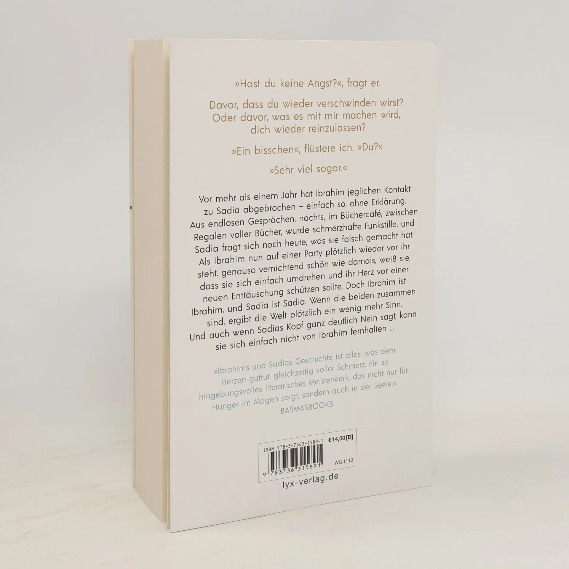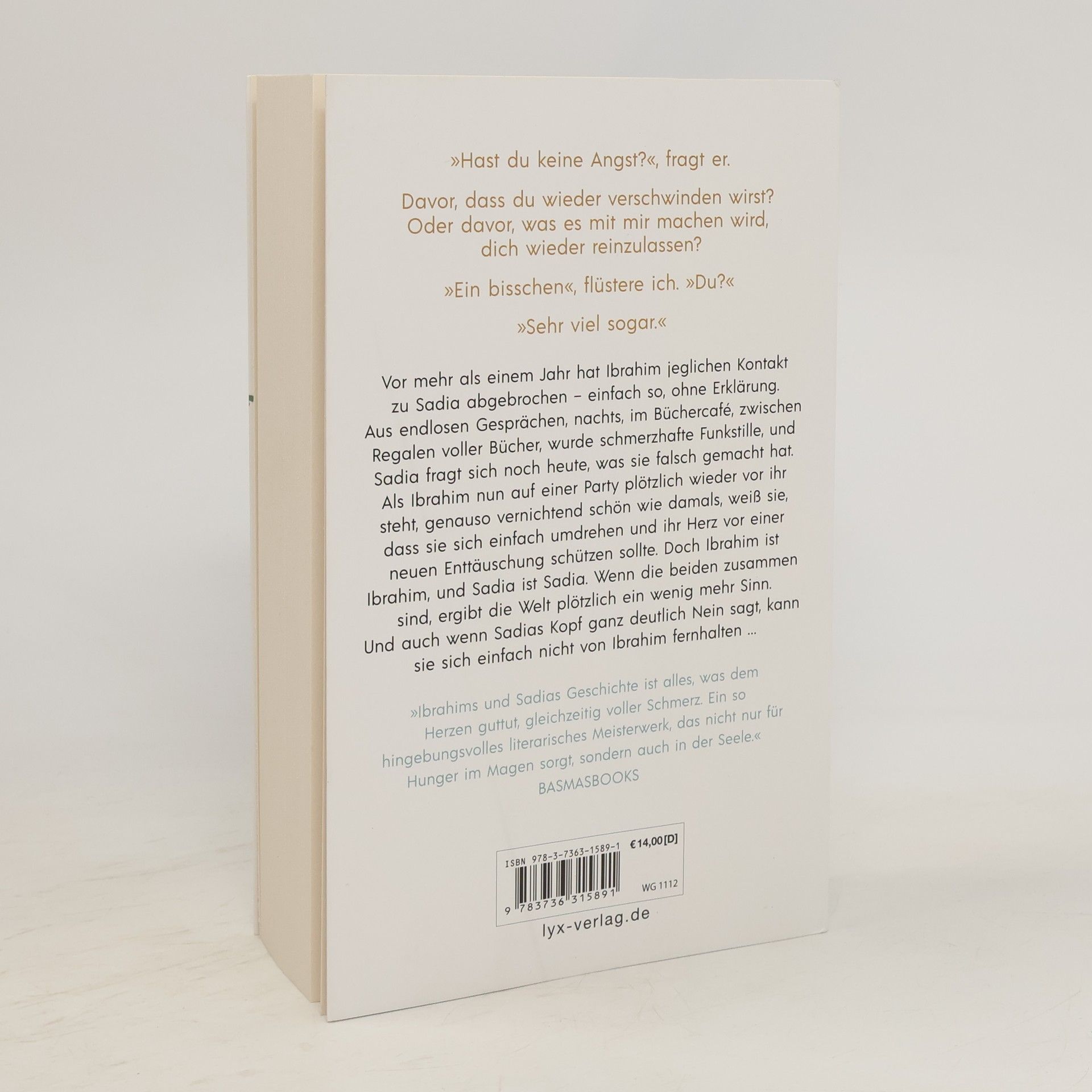 „Hast du keine Angst?“, fragt er. Davor, dass du wieder verschwinden wirst? Oder davor, was es mit mir machen wird, dich wieder reinzulassen? „Ein bisschen“, flüstere ich. „Du?“ „Sehr viel sogar.“ Vor mehr als einem Jahr hat Ibrahim jeglichen Kontakt zu Sadia abgebrochen - einfach so, ohne Erklärung. Aus endlosen Gesprächen, nachts, im Büchercafé, zwischen Regalen voller Bücher, wurde schmerzhafte Funkstille, und Sadia fragt sich noch heute, was sie falsch gemacht hat. Als Ibrahim nun auf einer Party plötzlich wieder vor ihr steht, genauso vernichtend schön wie damals, weiß sie, dass sie sich einfach umdrehen und ihr Herz vor einer neuen Enttäuschung schützen sollte. Doch Ibrahim ist Ibrahim, und Sadia ist Sadia. Wenn die beiden zusammen sind, ergibt die Welt plötzlich ein wenig mehr Sinn. Und auch wenn Sadias Kopf ganz deutlich Nein sagt, kann sie sich einfach nicht von Ibrahim fernhalten ... „Ibrahims und Sadias Geschichte ist alles, was dem Herzen guttut, gleichzeitig voller Schmerz. Ein so hingebungsvolles literarisches Meisterwerk, das nicht nur für Hunger im Magen sorgt, sondern auch in der Seele.“ BASMASBOOKS