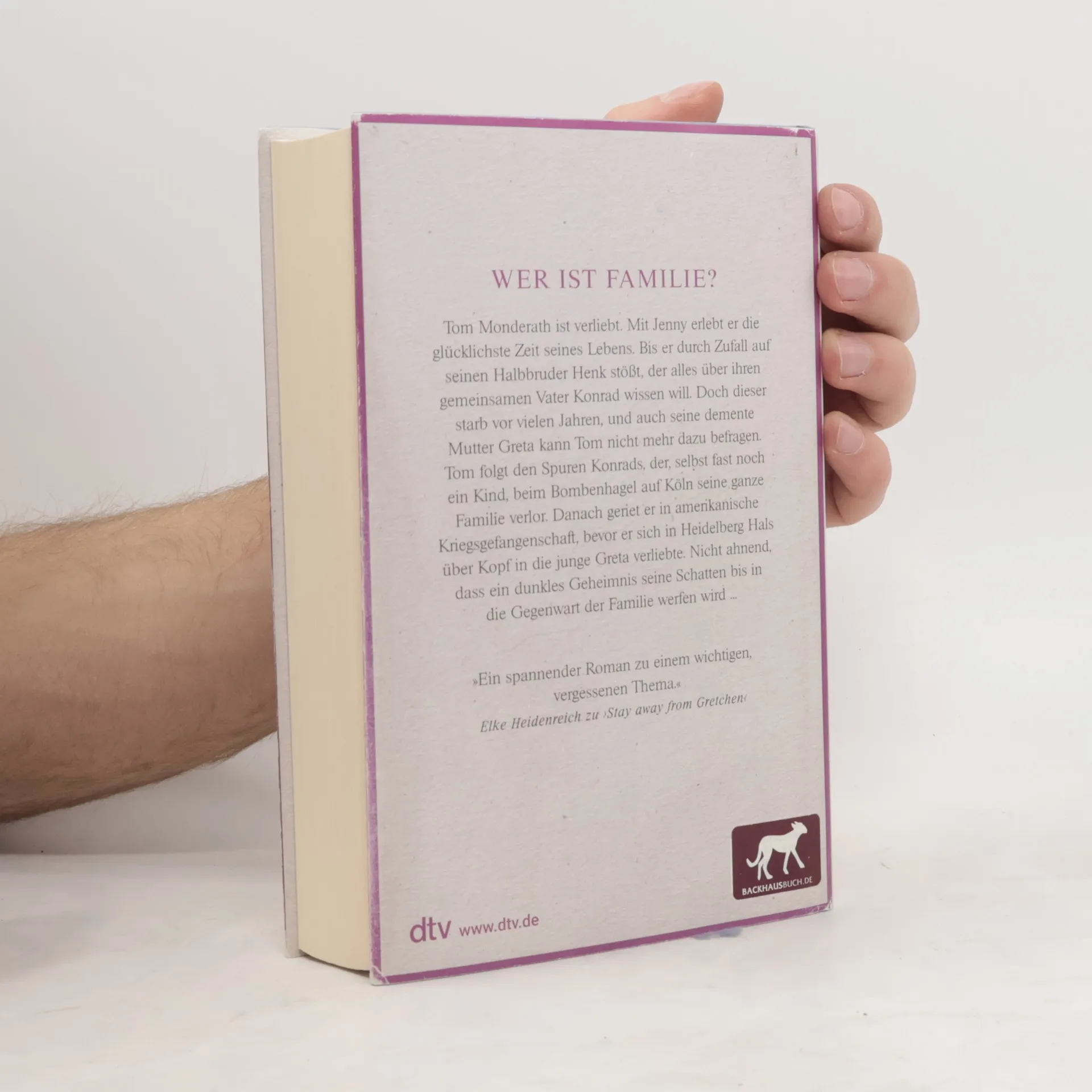 Wer ist Familie? Tom Monderath ist frisch verliebt: Mit Jenny erlebt er die glücklichste Zeit seines Lebens. Bis er durch Zufall auf seinen Halbbruder Henk stößt, der alles über ihren gemeinsamen Vater wissen will. Doch Konrad starb vor vielen Jahren und seine demente Mutter Greta kann Tom nicht befragen. Als sich weitere Halbgeschwister melden, wird es Tom zu viel. Jenny und Henk hingegen folgen den Spuren Konrads. Selbst fast noch ein Kind, kämpfte Toms Vater im Krieg, geriet in amerikanische Gefangenschaft, bevor er in den späten 40er-Jahren nach Heidelberg kommt. Dort verliebt er sich Hals über Kopf in die junge Greta, nicht ahnend, dass ein Geheimnis aus der dunkelsten Zeit des Nationalsozialismus ihre gemeinsame Familie ein Leben lang begleiten wird ...