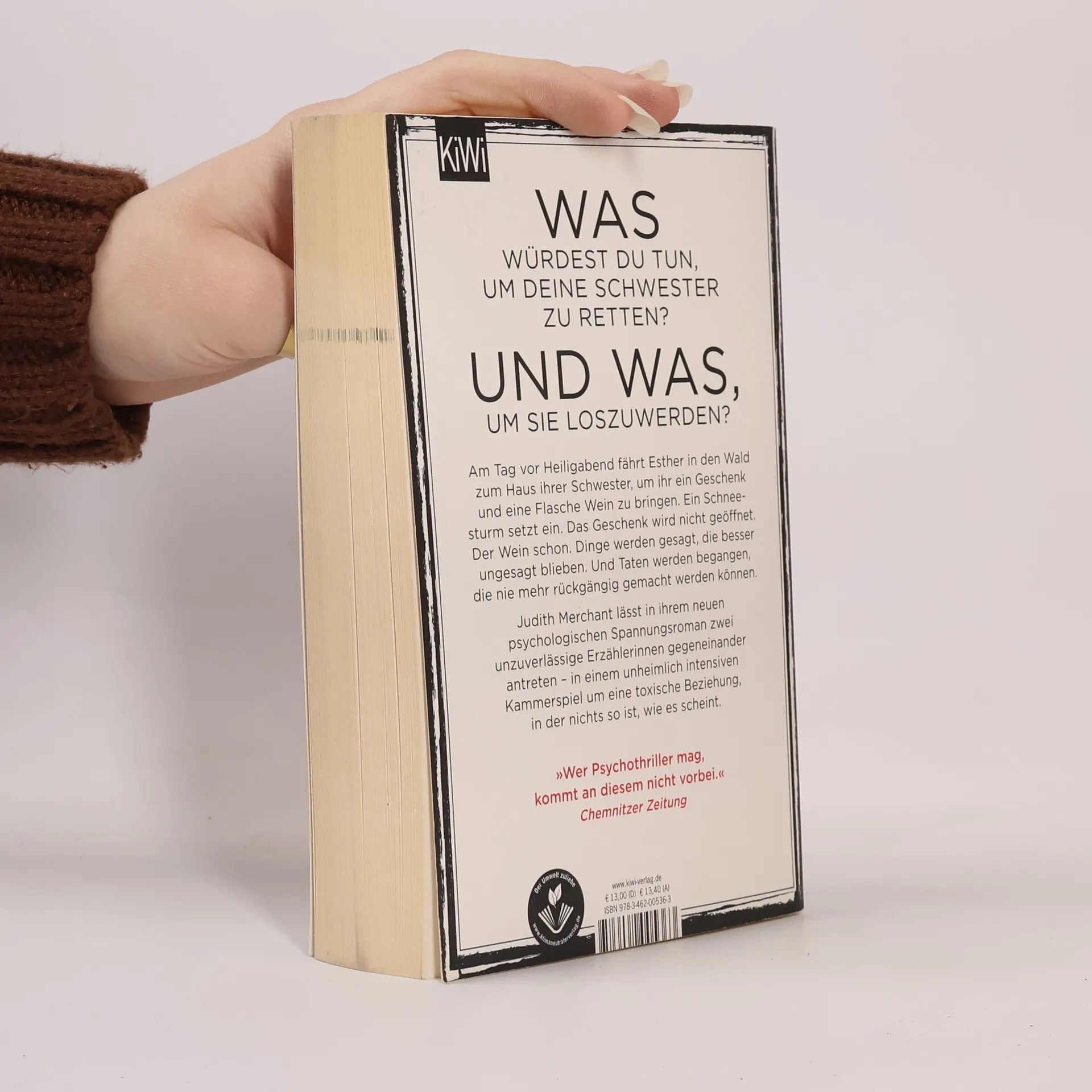 Am Tag vor Heiligabend fährt Esther zum Haus ihrer Schwester, um ihr ein Geschenk und eine Flasche Wein zu bringen. Ein Schneesturm setzt ein. Das Geschenk wird nicht geöffnet. Der Wein schon. Dinge werden gesagt, die besser ungesagt blieben. Und Taten werden begangen, die nie mehr rückgängig gemacht werden können. Eigentlich muss Esther ihr Weihnachtsfest mit Ehemann und Kindern in der Stadt vorbereiten. Doch ihre Schwester Sue, die seit ihrer Scheidung völlig allein in einem riesigen Haus tief im Wald lebt, geht ihr nicht aus dem Kopf. Und so setzt sie sich ins Auto und fährt los. Zum ersten Mal seit ihrer Kindheit kommen die Schwestern ins Gespräch, und kein Stein bleibt auf dem anderen – bis eine der beiden zum Messer greift. Während der Schnee alles verdeckt und jedes Geräusch erstickt … Judith Merchant lässt in ihrem neuen psychologischen Spannungsroman zwei unzuverlässige Erzählerinnen gegeneinander antreten – in einem Kammerspiel um eine toxische Beziehung, in der nichts so ist, wie es scheint.