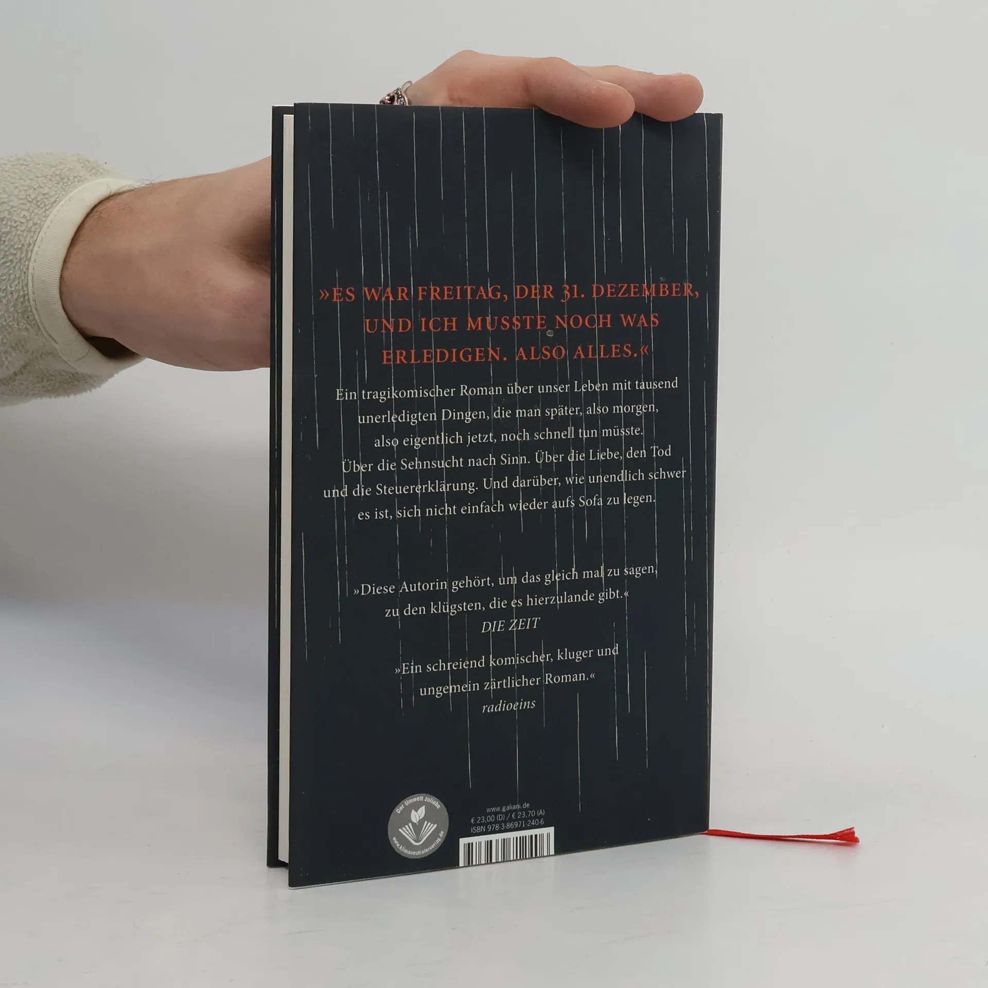 Nele Pollatschek erzählt eine alltägliche Geschichte, die mitten ins Herz unserer Existenz trifft. Aus einer To-do-Liste entsteht ein schillernder Roman darüber, wie schwer es ist, einfach nur zu leben. 31. Dezember. Steuererklärung, Wohnung putzen, Bett für die Tochter zusammenschrauben, Lebenswerk schreiben, mit dem Rauchen aufhören – eigentlich wollte Lars, neunundvierzigjähriger Vieldenker und angehender Schriftsteller, die Lücke zwischen den Jahren dafür nutzen, endlich alles zu erledigen, was in den letzten Dekaden so auf der Strecke geblieben ist. Das neue Jahr, so sein Plan, sollte in einem aufgeräumten Leben beginnen. Der Zeitpunkt dafür schien perfekt: Die Kinder waren im Auslandsjahr, die Frau unterwegs. Keiner da, der stören könnte. Doch die Woche, in der noch alles zu schaffen gewesen wäre – plötzlich ist sie aufgebraucht. Der letzte Tag des Jahres hat begonnen – mit Nieselregen, wie sonst? Das Haus ist immer noch chaotisch. Das Leben sowieso. Und als Lars den ersten Punkt seiner To-do-Liste ansteuert, fühlt es sich an, als müsse er nicht nur sich selbst, sondern eine ganze Welt neu erfinden. In ihrem lustigen, tragischen und philosophischen Roman erzählt Nele Pollatschek von Chaos und der Sehnsucht nach Ordnung, von perfekten Kindern und unperfekten Eltern, von Liebe, kleinen Schrauben und großen Werken. Vor allem aber erzählt sie von der Schwierigkeit, sein Leben nicht auf später zu verschieben.