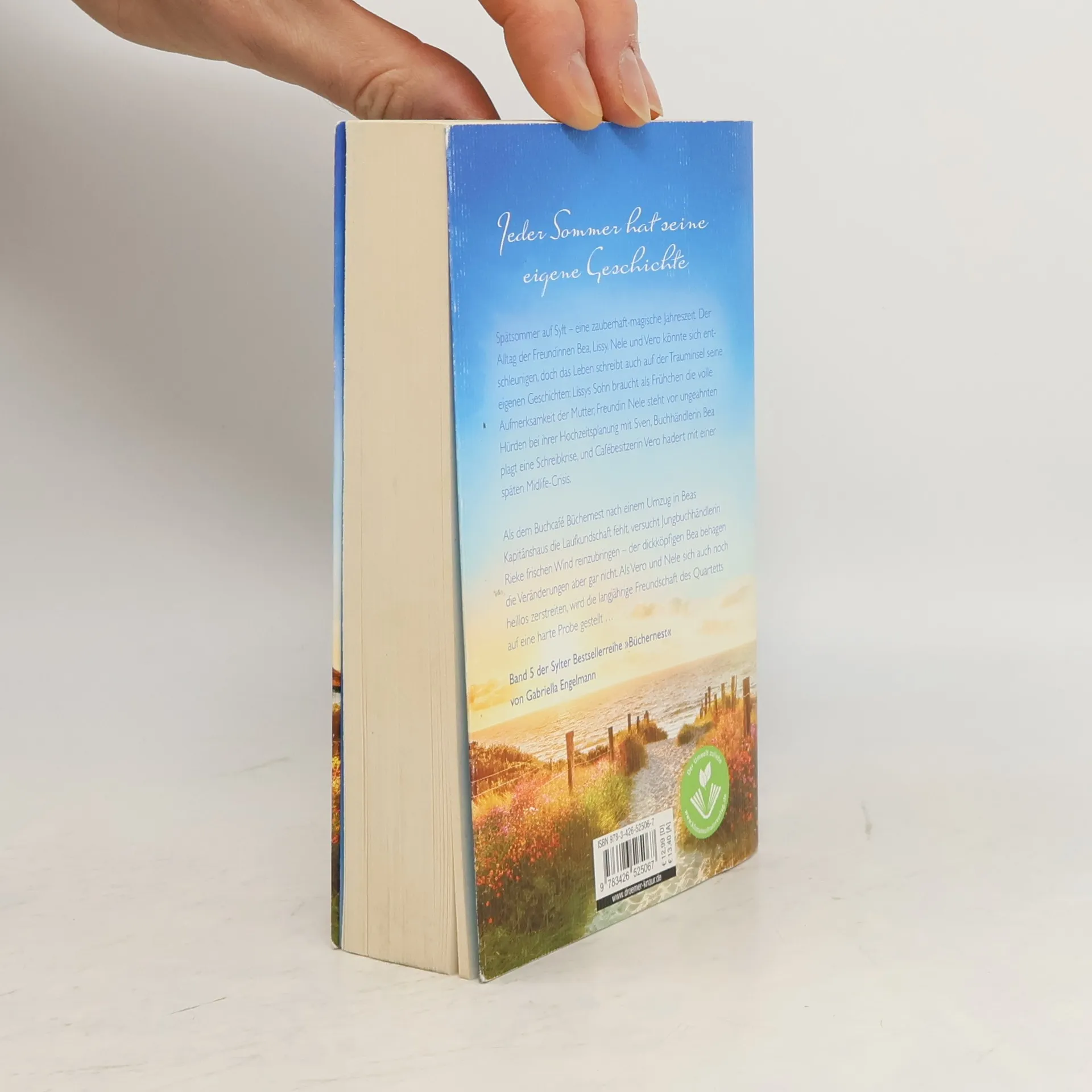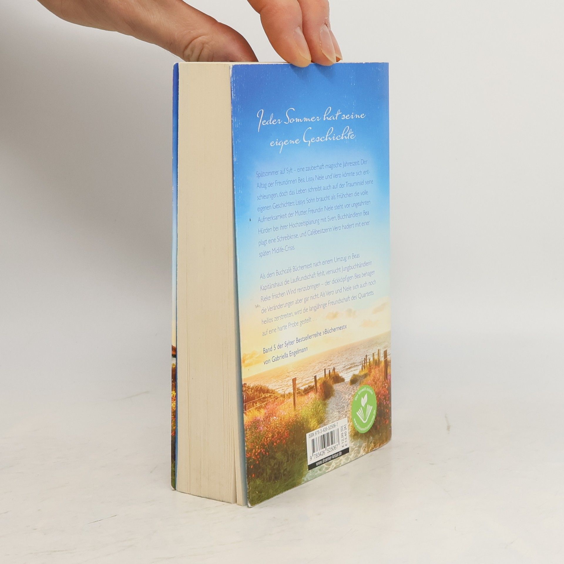Das »Büchernest« auf Sylt hat wieder geöffnet: »Inselsehnsucht« ist der 5. Wohlfühlroman um vier Freundinnen und eine Buchhandlung auf Sylt von Bestseller-Autorin Gabriella Engelmann. Im Spätsommer auf Sylt tanzen sanfte Wattewolken am Himmel, und Heckenrosen leuchten. Der Alltag der Freundinnen Bea, Lissy, Nele und Vero könnte in dieser zauberhaften Jahreszeit entschleunigen, doch das Leben bringt Herausforderungen: Lissys Sohn Niels benötigt als Frühchen die volle Aufmerksamkeit seiner Mutter, Nele kämpft mit unerwarteten Hürden bei der Hochzeitsplanung mit Sven, Bea hat eine Schreibkrise, und Vero hadert mit einer späten Midlife-Crisis. Nach dem Umzug des Buchcafés »Büchernest« in Beas Kapitänshaus fehlt es an Laufkundschaft. Jungbuchhändlerin Rieke versucht, frischen Wind reinzubringen, was Bea gar nicht gefällt. Zudem zerstreiten sich Vero und Nele, was die langjährige Freundschaft des Quartetts auf eine harte Probe stellt. Gabriella Engelmann schafft mit ihren Inselromanen um das »Büchernest« ein kleines Wunder: kluge Unterhaltung, die das Herz berührt und zum Nachdenken anregt. Die Wohlfühlromane der »Büchernest-Serie« sind in folgender Reihenfolge erschienen: Inselzauber, Inselsommer, Wintersonnenglanz, Strandkorbträume, Inselsommerstürme (Kurzroman) und Inselsehnsucht.