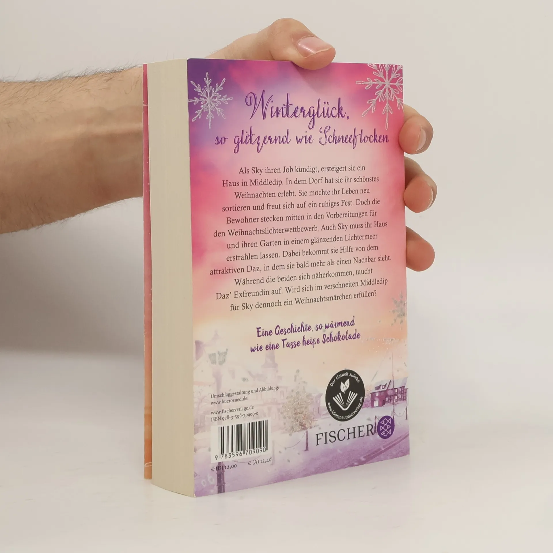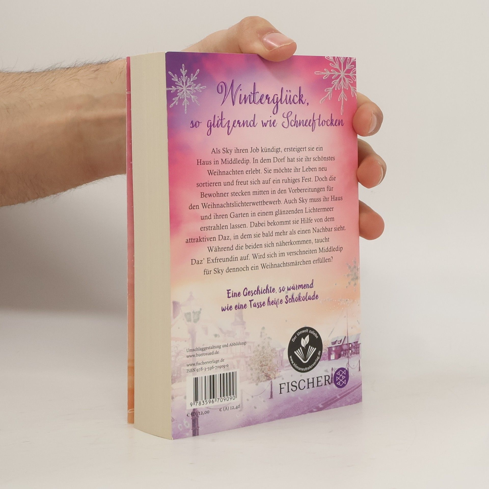 So wärmend wie eine Tasse heiße Schokolade – der neue Roman der britischen Erfolgsautorin Eine Weihnachtsliebe, so glitzernd wie Schneeflocken Als Sky ihren Job kündigt, ersteigert sie ein Haus in dem kleinen Middledip. In dem Dorf hat sie ihr schönstes Weihnachten erlebt und verbindet mit ihm glückliche Kindheitserinnerungen. Sie möchte ihr Leben neu sortieren und freut sich auf ein ruhiges Fest. Doch die Bewohner stecken mitten in den Vorbereitungen für den Weihnachtslichterwettbewerb. Auch Sky muss ihr renovierungsbedürftiges Haus und ihren Garten in einem glänzenden Lichtermeer erstrahlen lassen. Dabei bekommt sie Hilfe von dem attraktiven Daz, in dem sie bald mehr als einen freundlichen Nachbar sieht. Während die beiden sich näherkommen, taucht plötzlich Daz‘ Exfreundin auf. Wird sich im verschneiten Middledip für Sky dennoch ein Weihnachtsmärchen erfüllen? »Ein Pageturner.« Woman’s Weekly Hier werden Weihnachtsträume wahr – Die WinterWeihnachtsZauber-Reihe: Band 1: Winterzauberküsse Band 2: Mistelzweigzauber Band 3: Wunderkerzenzauber Band 4: Schneeflockenglitzern Band 5: Zimtsternträume Band 6: Sternschnuppenfunkeln Band 7: Winterglücksträume Die Romane sind auch unabhängig voneinander ein großer Lesegenuss.