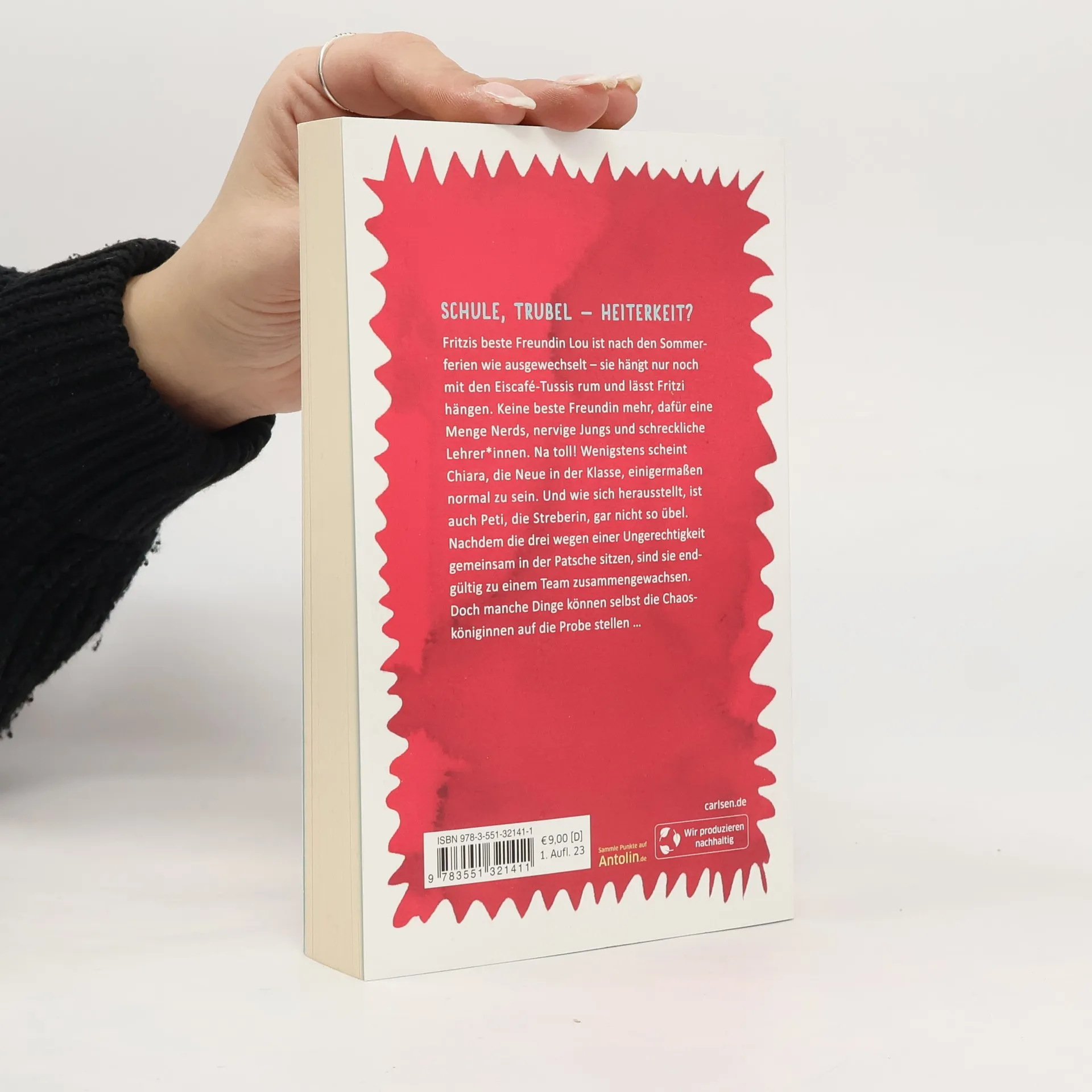 Schule, Trubel - Heiterkeit? Fritzis beste Freundin Lou ist nach den Sommerferien wie ausgewechselt – sie hängt nur noch mit den Eiscafé-Tussis rum und lässt Fritzi hängen. Keine beste Freundin mehr, dafür eine Menge Nerds, nervige Jungs und schreckliche Lehrer. Na toll! Chiara, die Neue in der Klasse, scheint wenigstens einigermaßen normal zu sein. Und wie sich herausstellt, ist auch Peti, die Streberin, gar nicht so übel. Nachdem die drei wegen einer Ungerechtigkeit gemeinsam in der Patsche sitzen und blaue Briefe von der Schulleitung bekommen, sind sie endgültig zu einem Team zusammengewachsen: Die Chaosköniginnen!