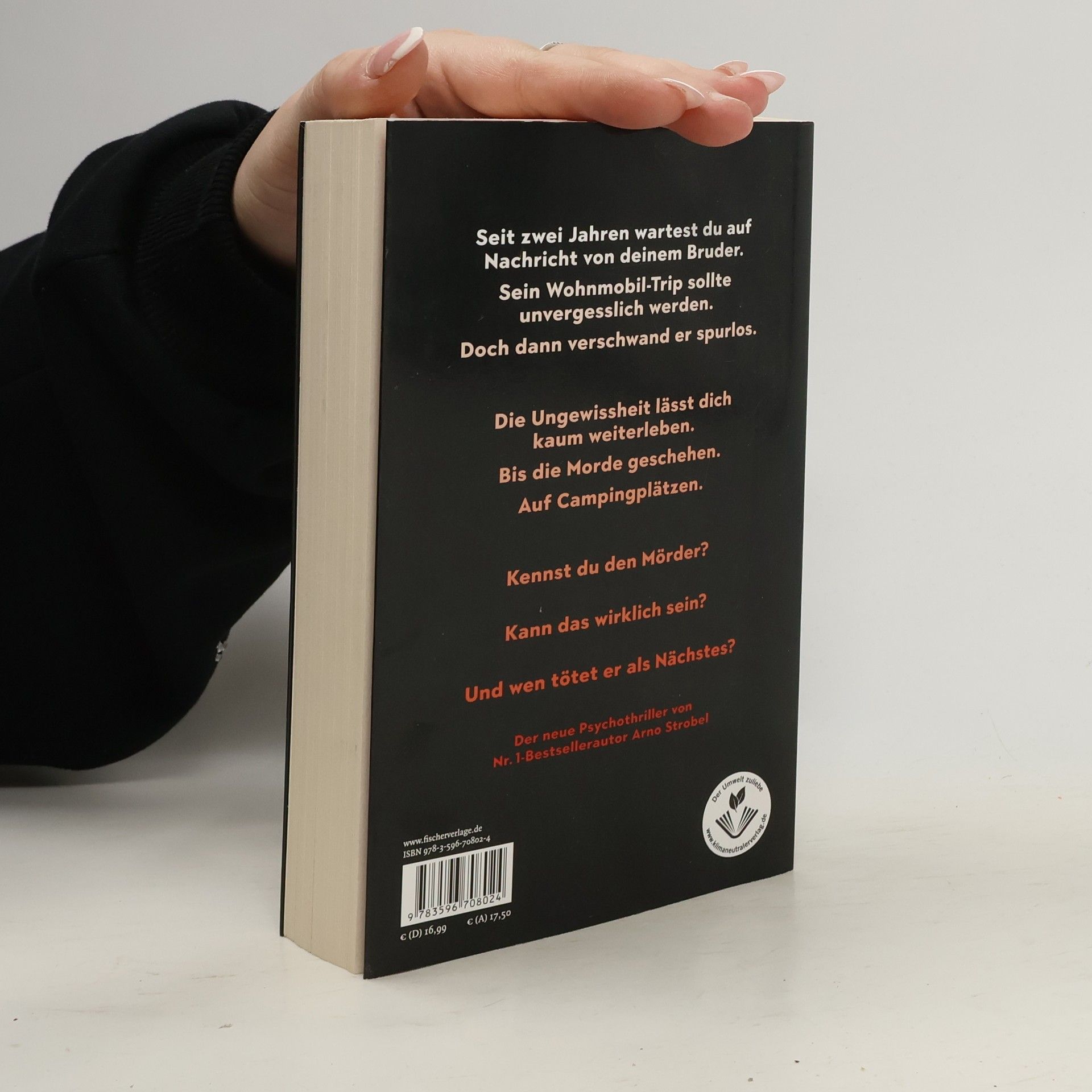 Seit zwei Jahren wartest du auf ein Lebenszeichen von deinem Bruder. Sein Wohnmobil-Trip sollte unvergesslich werden. Aber seither keine Spur von ihm. Bis die Morde geschehen … Der neue Psycho-Thriller von Nr.1-Bestseller-Autor Arno Strobel Evelyn Jancke ist nur noch ein Schatten ihrer selbst, seit ihr Bruder Fabian zwei Jahre zuvor auf einem Wohnmobil-Trip spurlos verschwand. Es gibt kein Lebenszeichen von ihm, die Ermittlungen wurden eingestellt. Allein ihre Arbeit als forensische Psychologin hält Evelyn aufrecht, vor allem, als die Oldenburger Polizei um ihre Mithilfe bei einer Mordserie bittet. Im norddeutschen Raum tötet ein Unbekannter scheinbar wahllos Menschen auf Campingplätzen. Er kommt immer nachts und verschwindet unerkannt wieder. Bis es einen Zeugen gibt. Und daraufhin ein Phantombild. Evelyn traut ihren Augen nicht, als sie es sieht. Und fasst einen verzweifelten Entschluss, der sie alles kosten könnte …