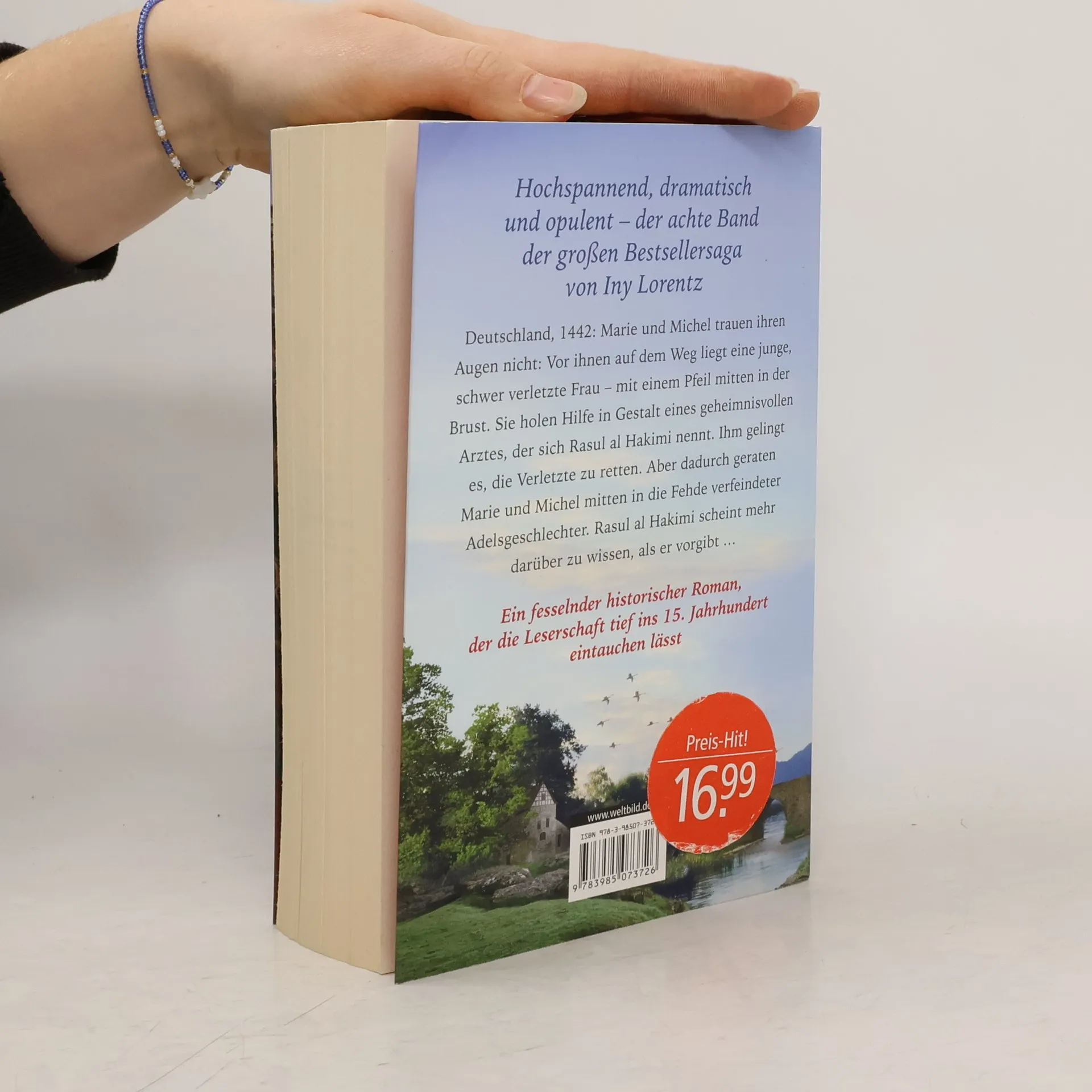 Der 8. historische Roman der beliebten historischen Roman-Serie um die Wanderhure Marie von der Bestseller-Autorin Iny Lorentz Zurück ins deutsche Mittelalter : Die ehemalige Wanderhure und ihr Mann Michel treffen auf einen Arzt aus dem Orient, der ein dunkles Geheimnis zu verbergen scheint. Deutschland, 1441; Marie und Michel trauen ihren Augen nicht: Vor ihnen auf dem Weg liegt eine junge, schwer verletzte Frau – einen Pfeil mitten durch die Brust. Michel lässt den geheimnisvollen orientalischen Arzt Rasul al Hakimi holen, den sie erst am Vorabend in einer Herberge kennengelernt haben. Ihm gelingt es, das verletzte Edelfräulein am Leben zu erhalten. Doch Marie und Michel geraten dadurch mitten in die Fehde verfeindeter Adelsgeschlechter, die um die Vorherrschaft kämpfen. Und der orientalische Arzt scheint mehr zu wissen, als er vorgibt. Um das Schlimmste zu verhindern, muss Marie das Geheimnis des Arztes aufdecken. Mit ihrer historischen Roman-Serie über das Schicksal der Kaufmannstochter Marie, die im späten Mittelalter als Hübschlerin auf Wanderschaft gehen muss, hat Iny Lorentz einen historischen Bestseller nach dem anderen gelandet. Hochspannend, dramatisch und opulent lässt uns die Bestseller-Autorin tief ins deutsche Mittelalter eintauchen.